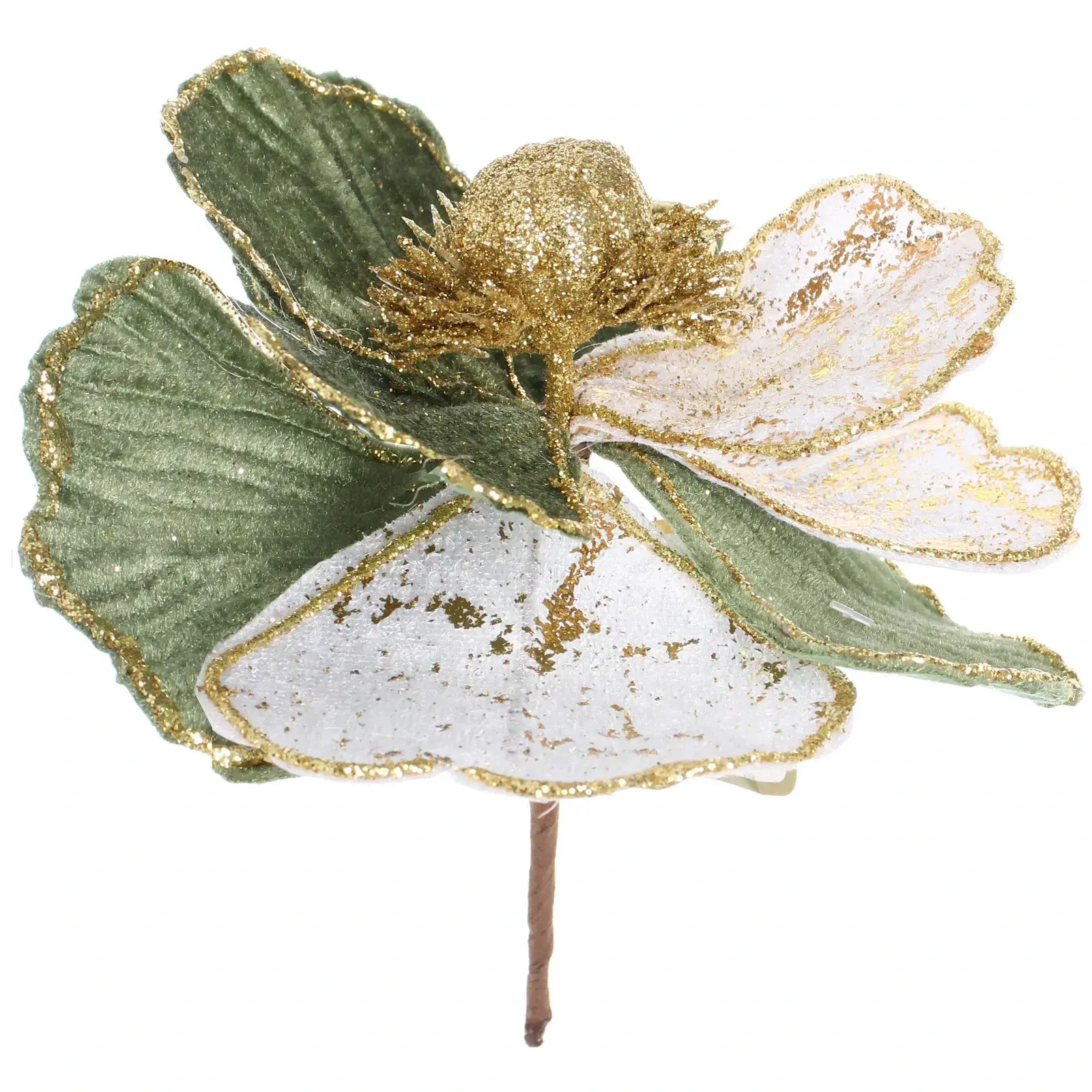 Искусственный цветок «Пуансеттия - Нежность» создаст волшебную атмосферу Нового года благодаря сочетанию изумрудных лепестков и золотистых акцентов. Идеальный выбор для тех, кто ценит детализированный дизайн и долговечность декора.