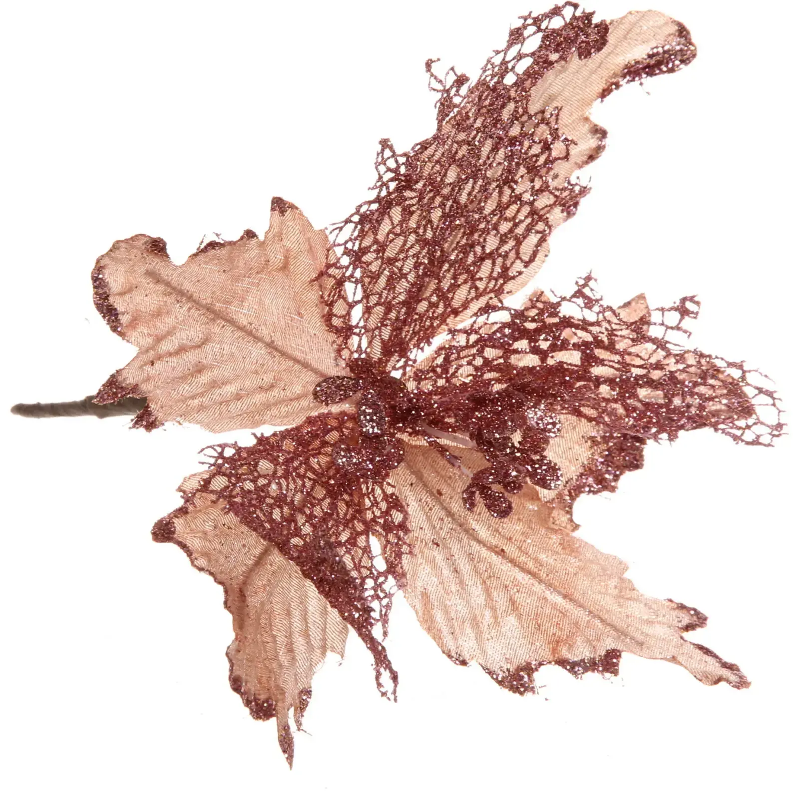Новогоднее украшение «Пуансеттия-Нежность» — это идеальный способ добавить волшебства в ваш дом. С его помощью вы сможете создать уютную и праздничную атмосферу, которая порадует вас и ваших близких. Это украшение выполнено в нежных розовых и золотистых тонах, что делает его универсальным для любого интерьера.