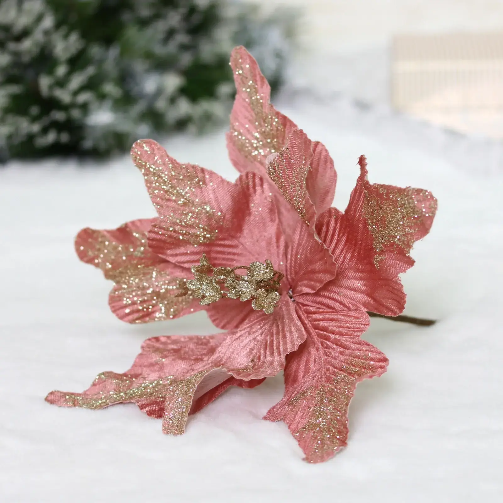 Новогоднее украшение «Пуансеттия - Нежность» станет идеальным дополнением к вашему праздничному декору. Его нежный розовый цвет в сочетании с блестящими золотистыми элементами добавит изысканности и уюта в ваш дом. Это украшение не только украсит ваш интерьер, но и создаст атмосферу тепла и радости в новогодние праздники.