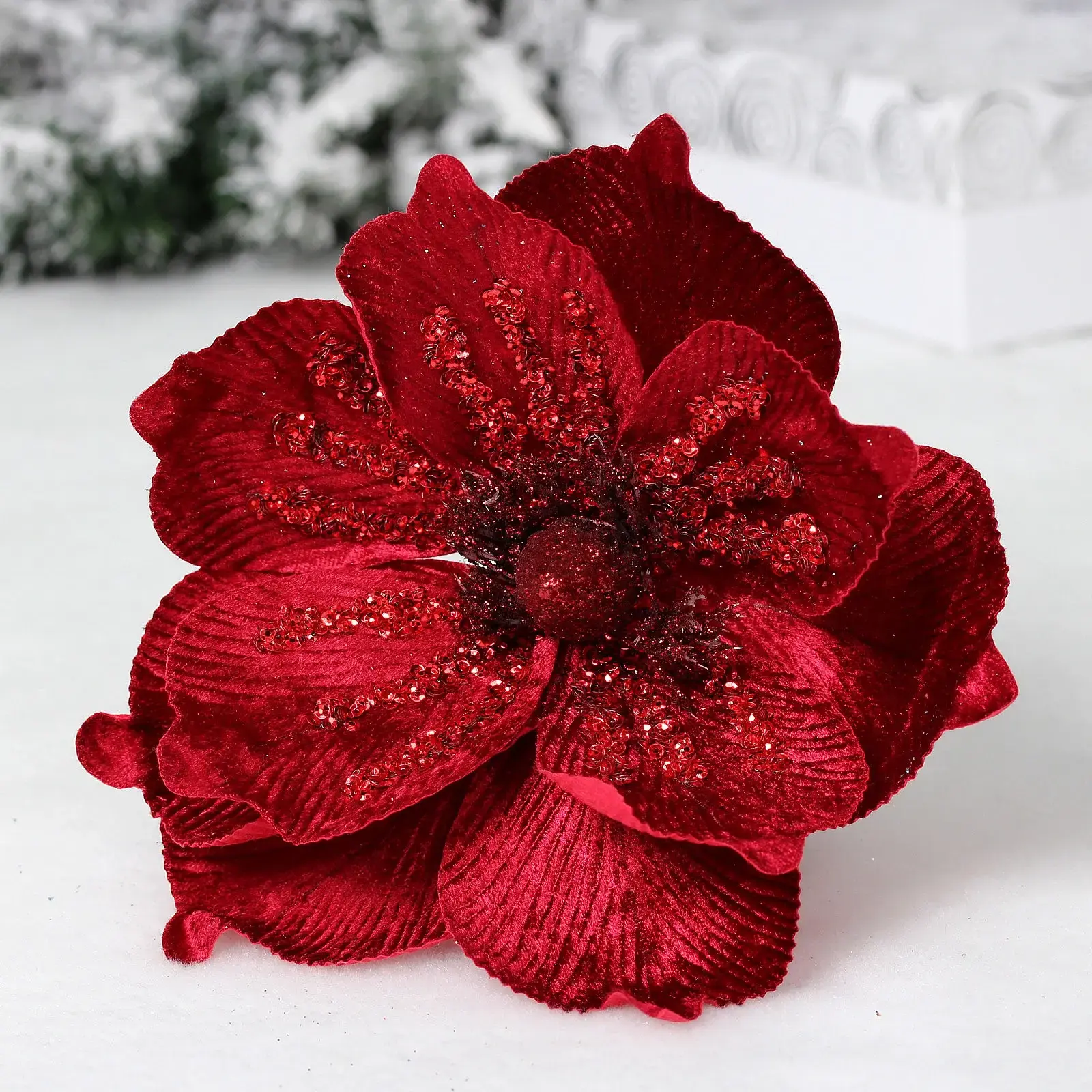 Новогоднее украшение 'Пуансеттия - Ночное сияние' станет ярким акцентом в вашем праздничном декоре. Его насыщенный бордовый цвет и мерцающие детали добавят волшебства в интерьер.
