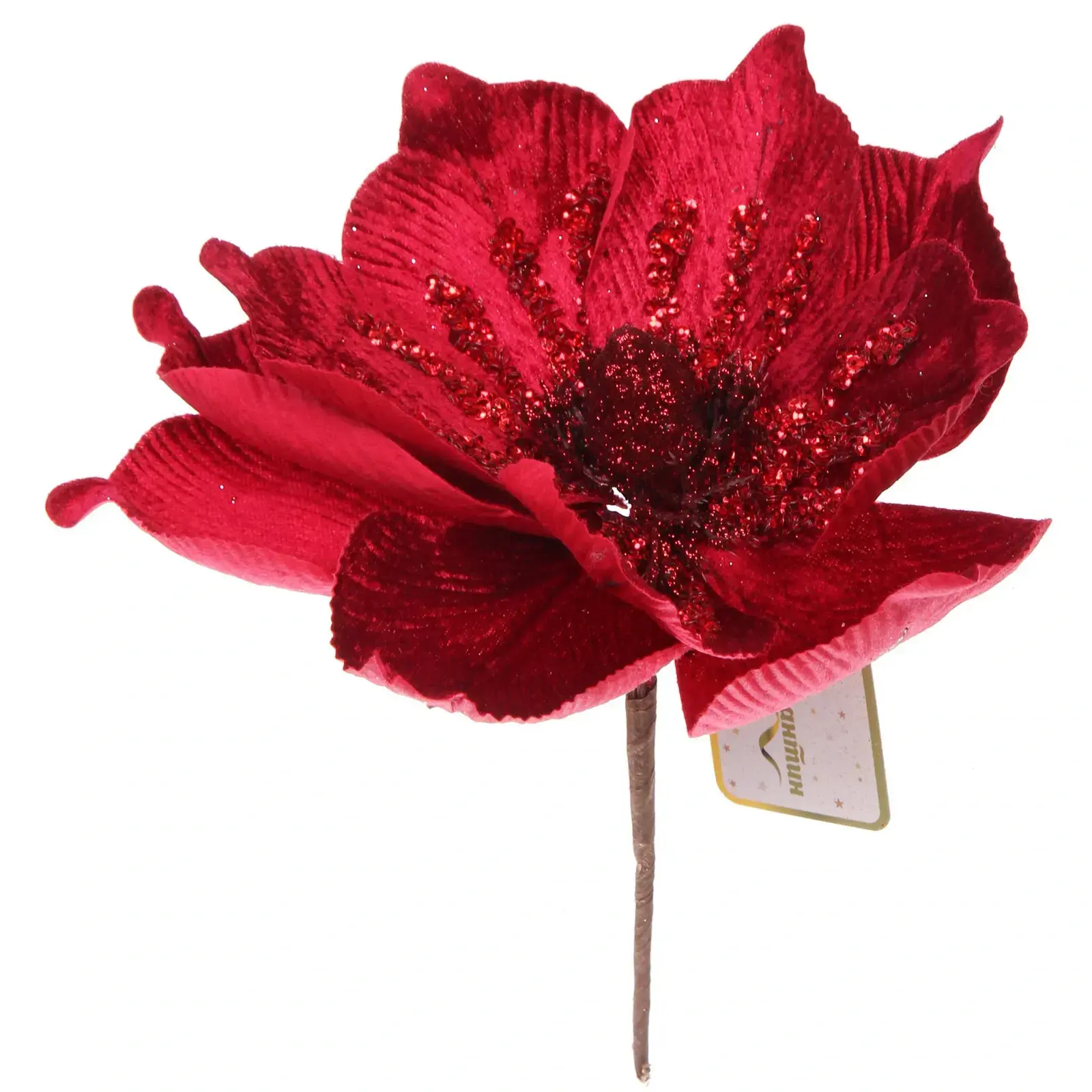 Украшение новогоднее 'Пуансеттия - Ночное сияние'/25см, бордовый/текстиль, пластик