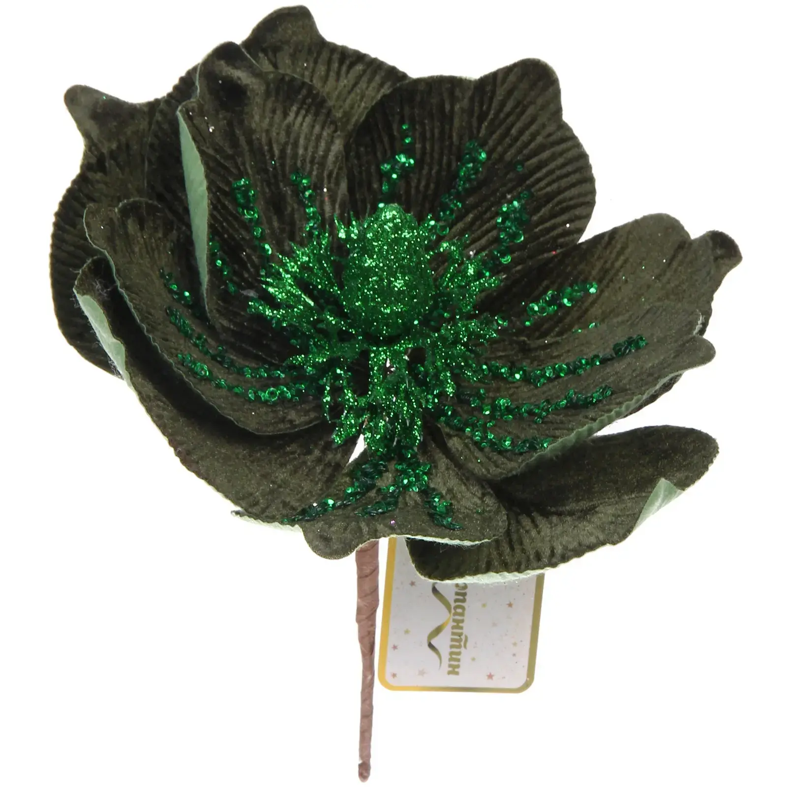 Новогоднее украшение 'Пуансеттия - Ночное сияние', 25см, изумруд, текстиль/пластик
