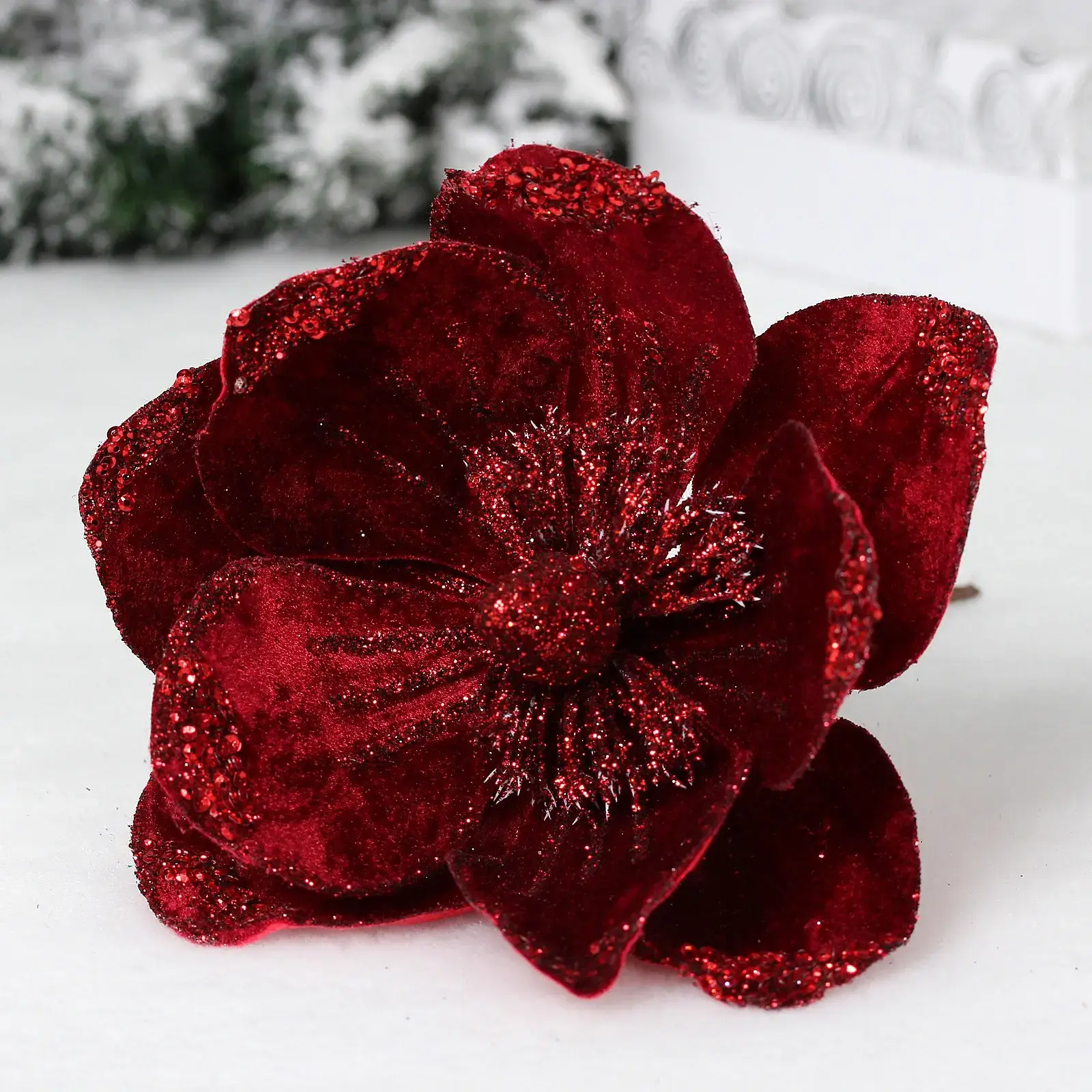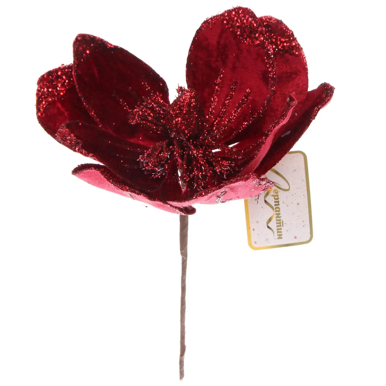 Искусственная пуансеттия с бархатными лепестками и мерцающими блёстками создаст атмосферу волшебства в вашем доме. Объёмная композиция 20 см в диаметре станет изысканным украшением праздничного стола, каминной полки или новогоднего венка.