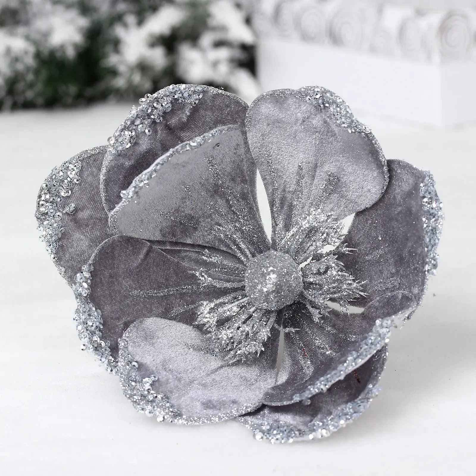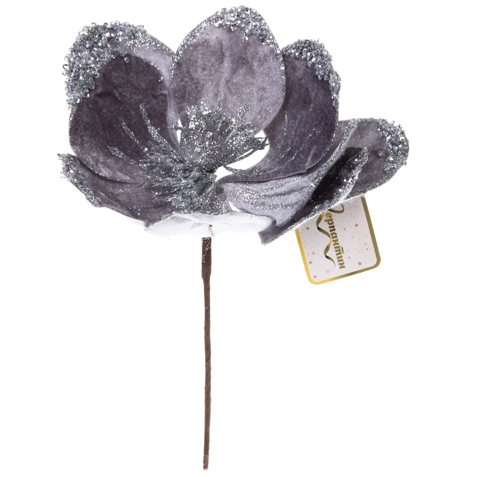 Новогоднее украшение «Пуансеттия - Пастель» 20 см, серый с блестками, пластик/текстиль