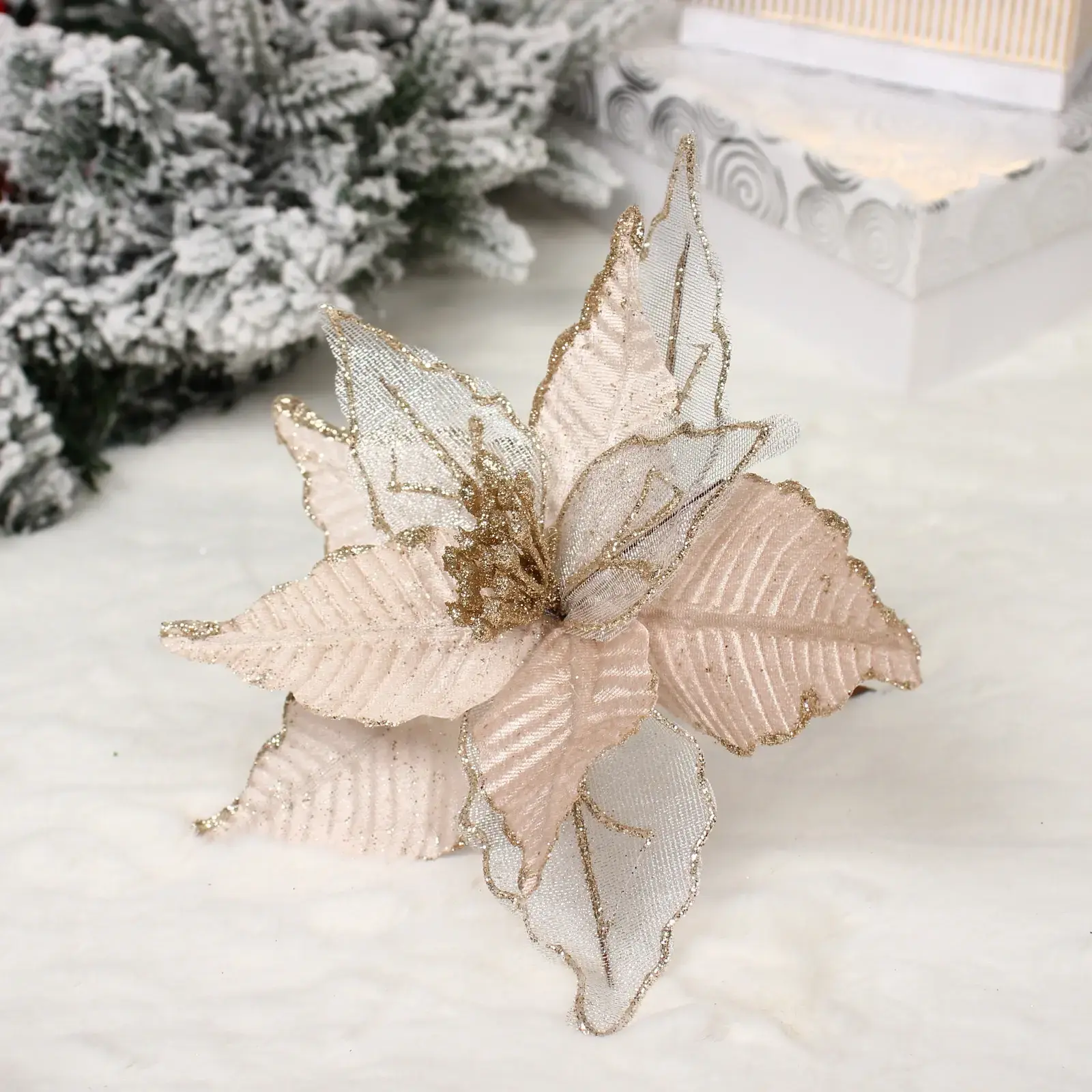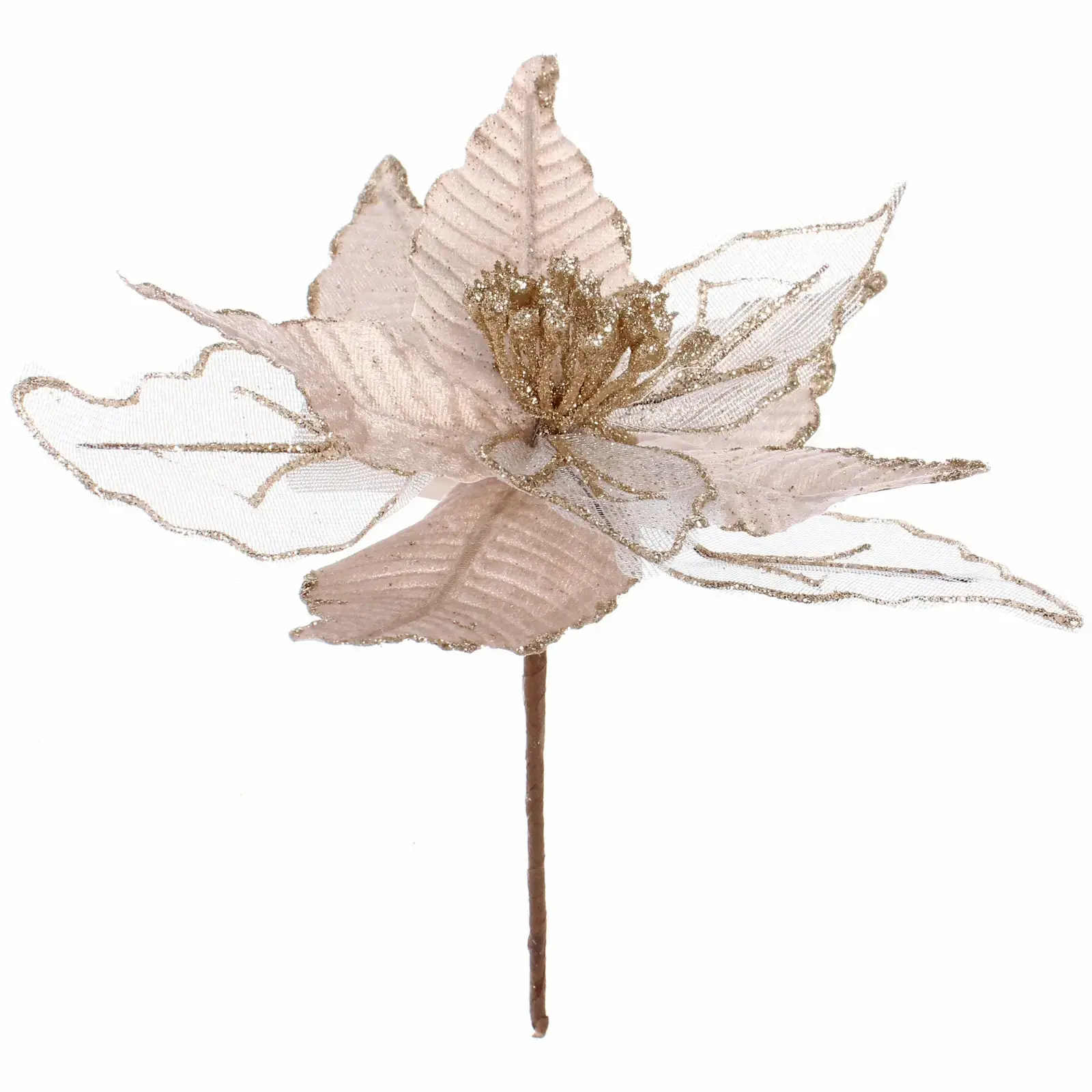 Новогоднее украшение «Пуансеттия - Шарм» 25 см, текстиль, белый/шампань, элегантный декор