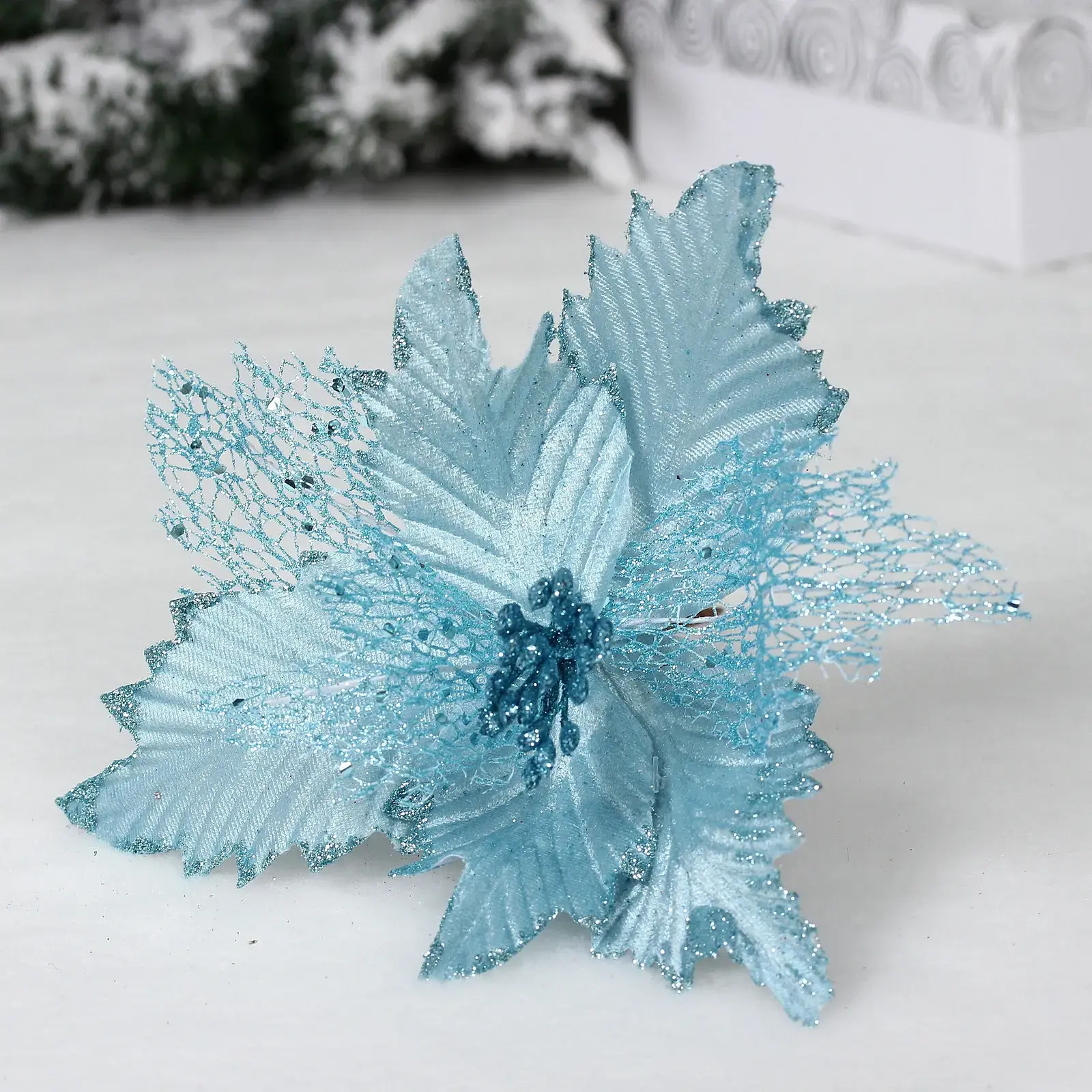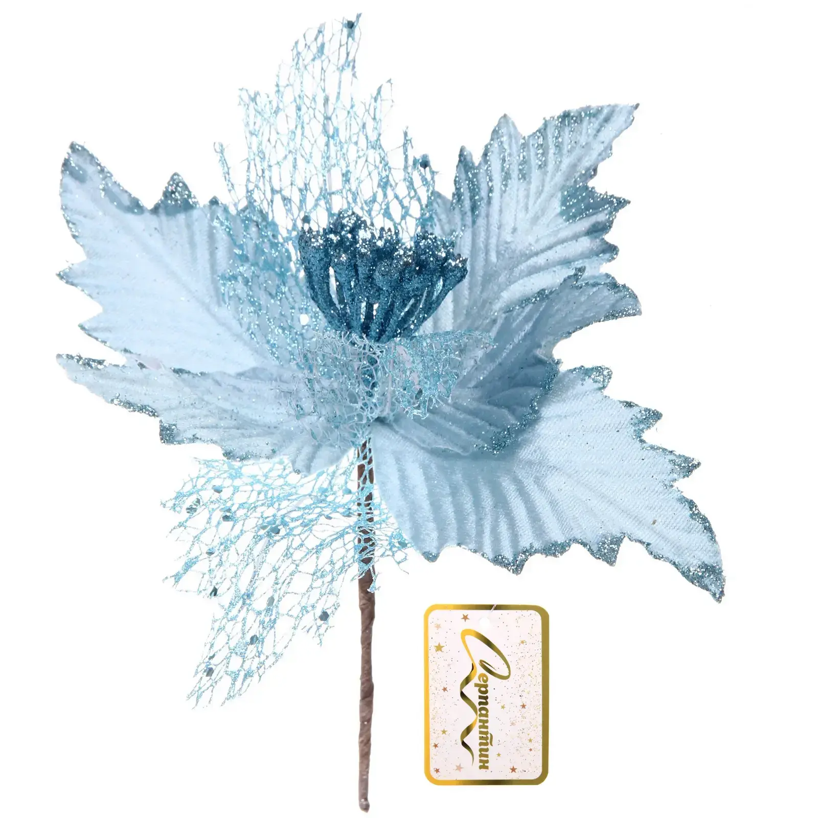 Создайте атмосферу волшебства с новогодним украшением 'Пуансеттия - Сказка'. Его нежно-голубые лепестки с мерцающими блестками добавят сияния вашему праздничному декору.