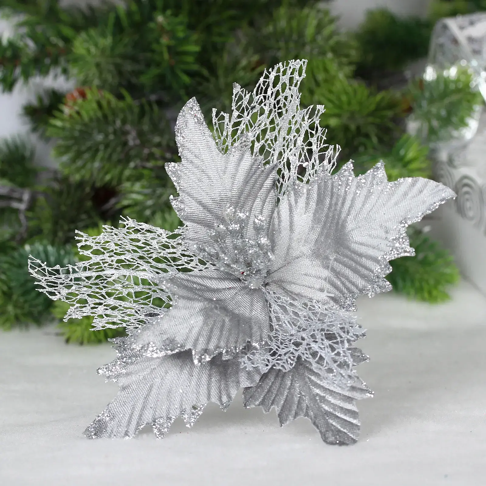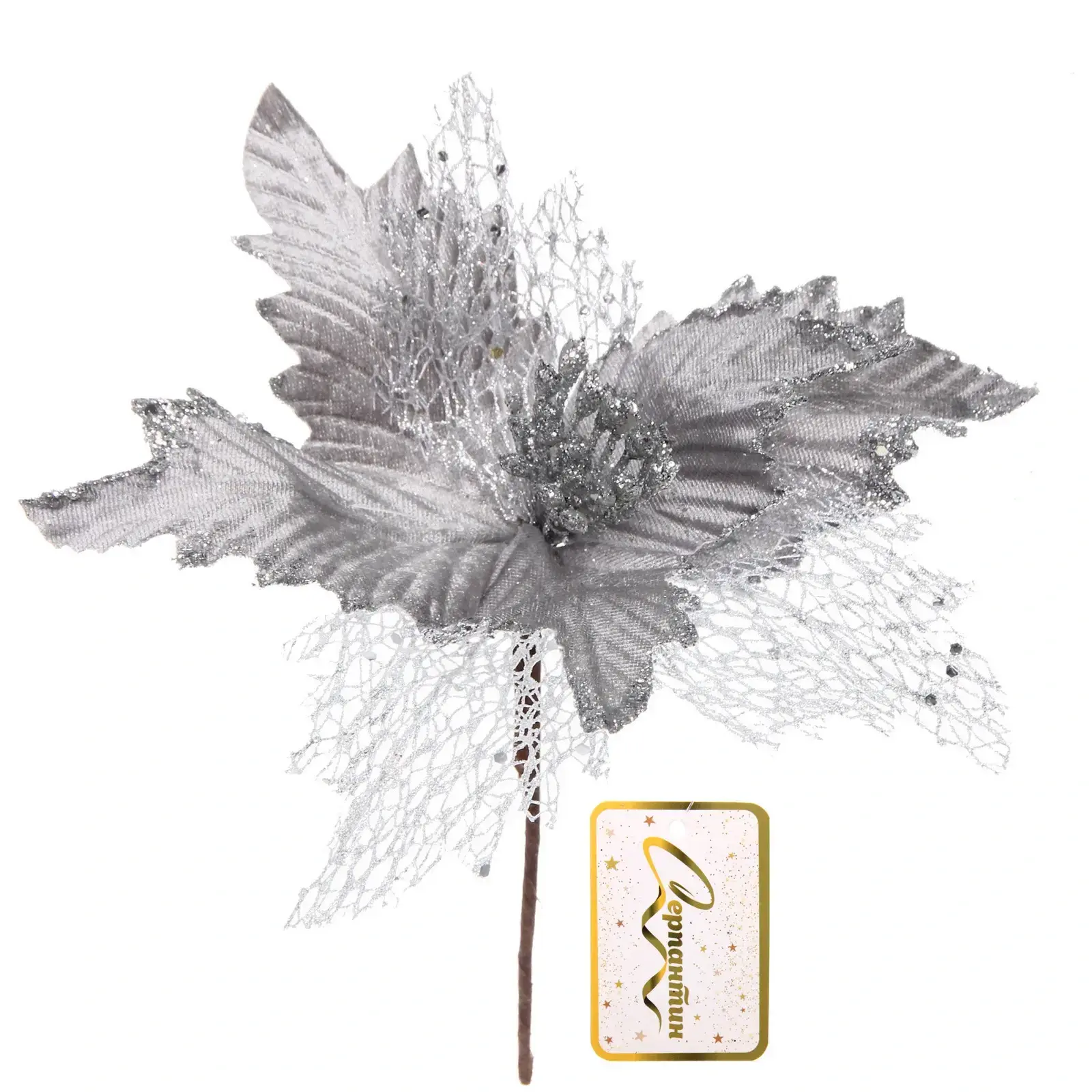 Украшение новогоднее 'Пуансеттия - Сказка' 23 см, серебро, пластик/текстиль