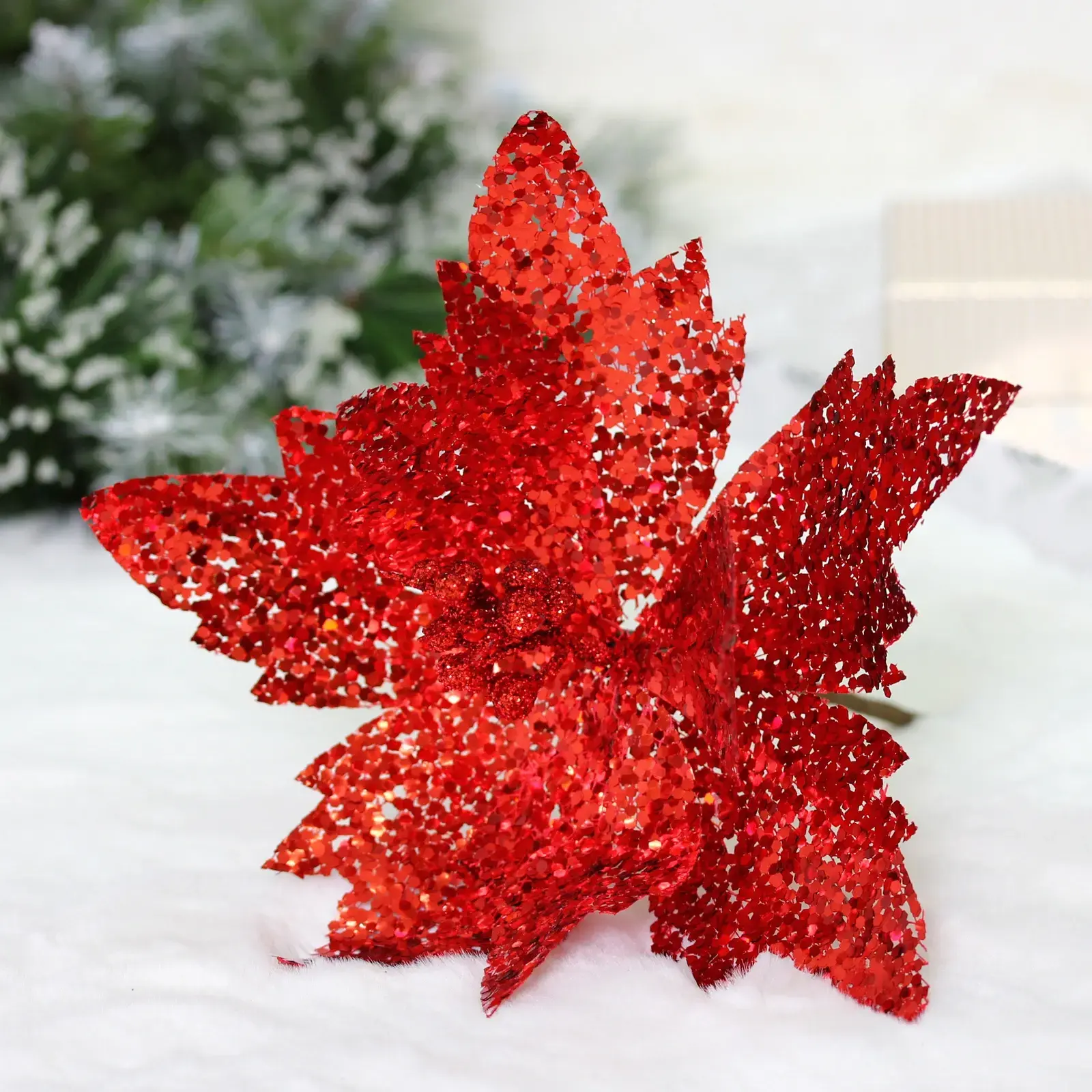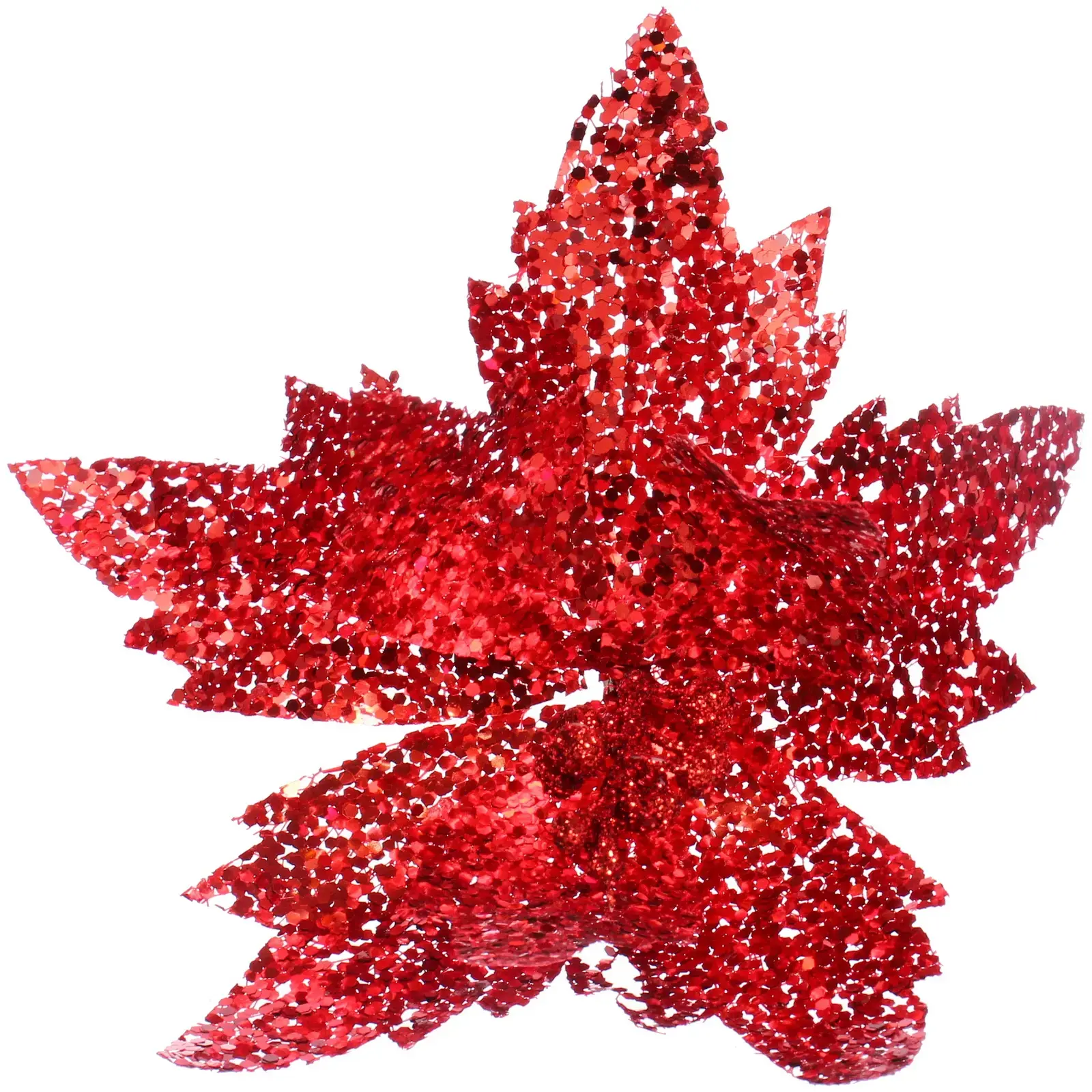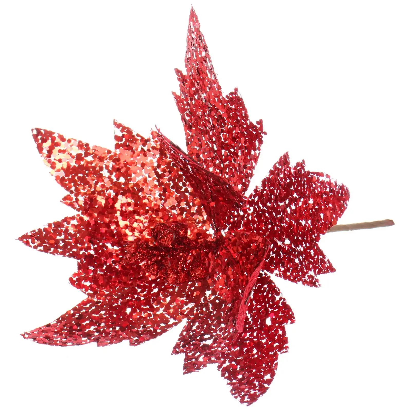 Лист декоративный "Пуансеттия - Царица ночи", 24 см, красный, с блестками