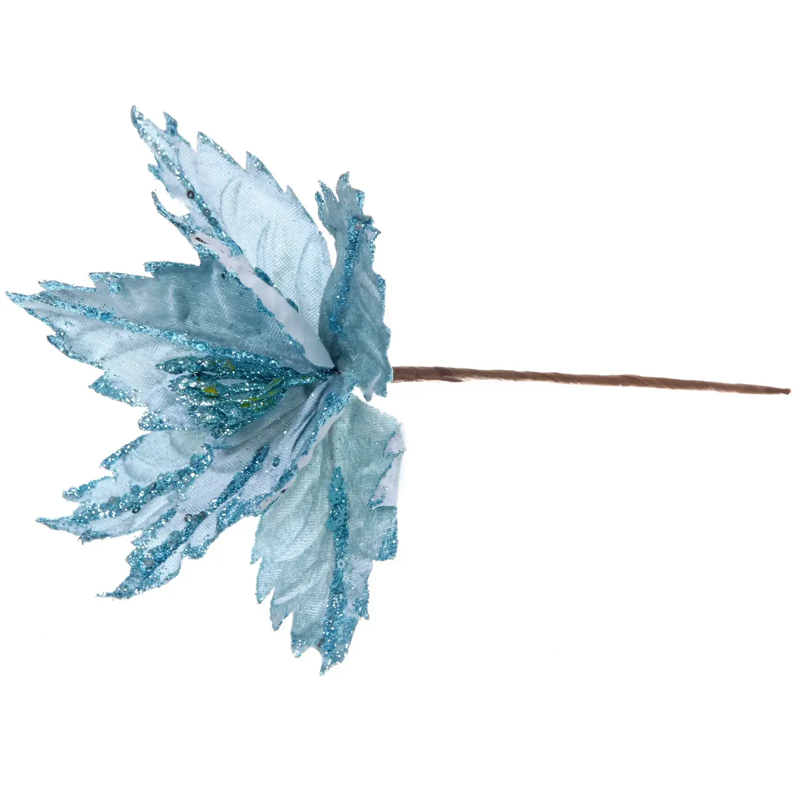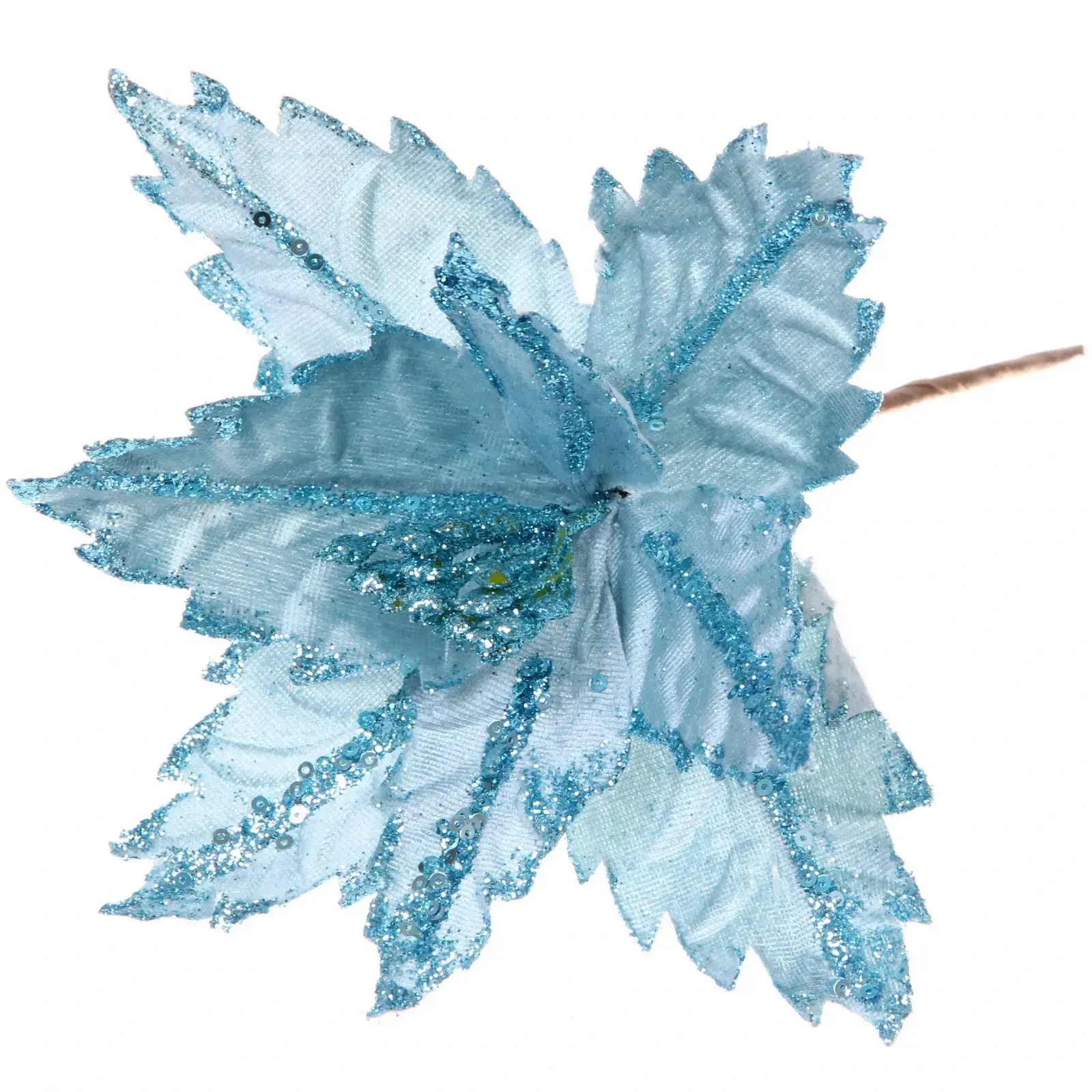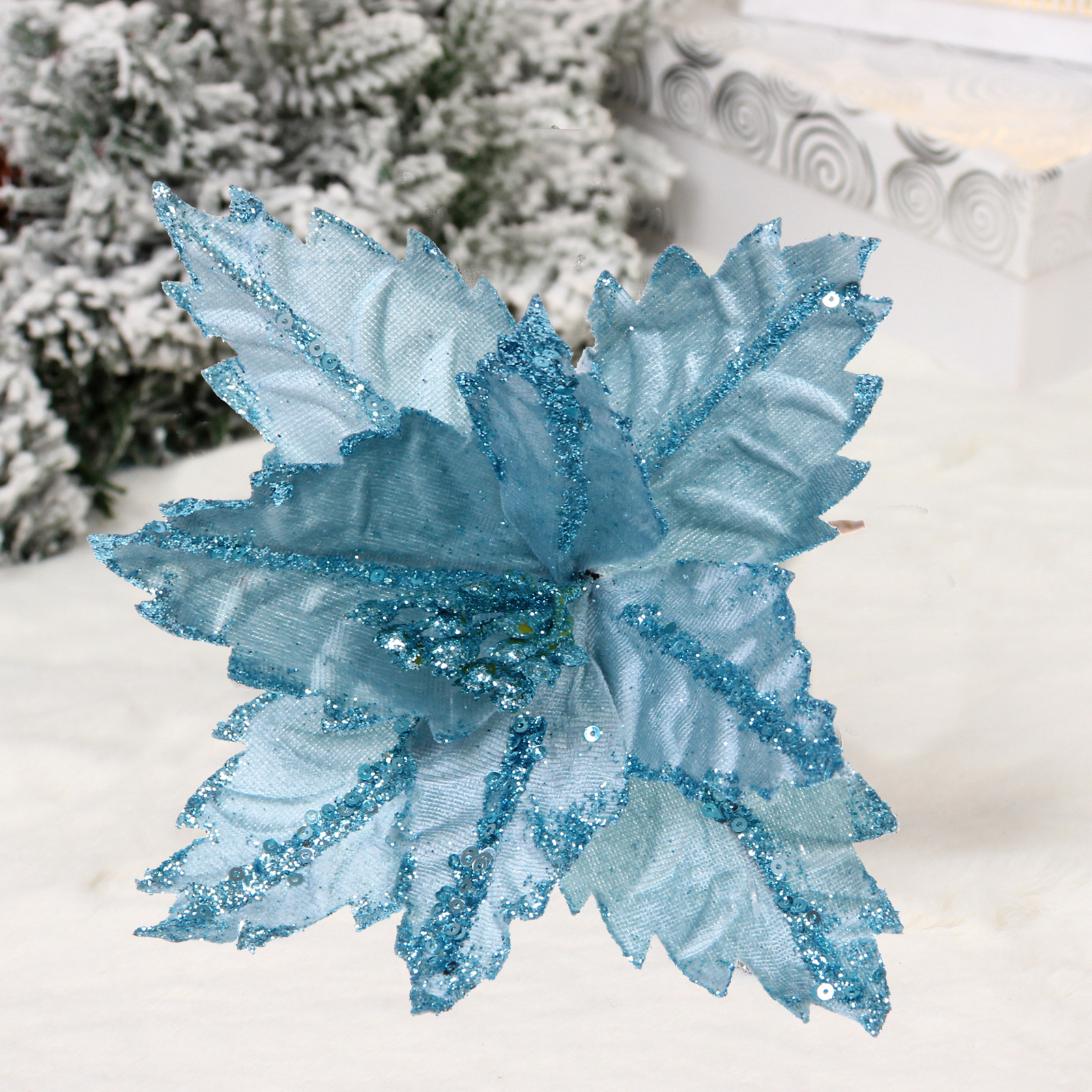 Новогоднее украшение «Пуансеттия - Узоры» станет идеальным дополнением к вашему праздничному декору. Его яркий голубой цвет и блестящие элементы создадут атмосферу волшебства и уюта в вашем доме. Это украшение не только привлекает внимание, но и добавляет нотку элегантности в любое оформление.