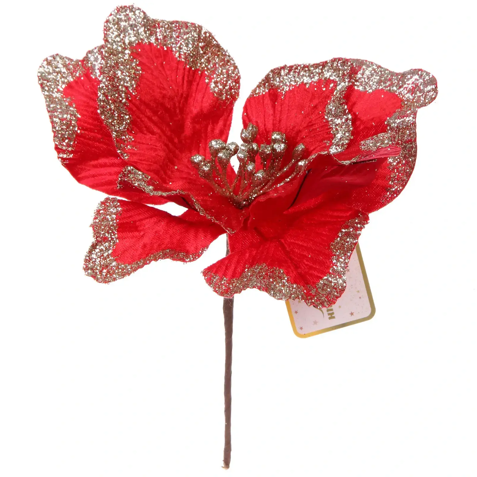 Новогоднее украшение «Пуансеттия», 23 см, красный с золотом, пластик и текстиль