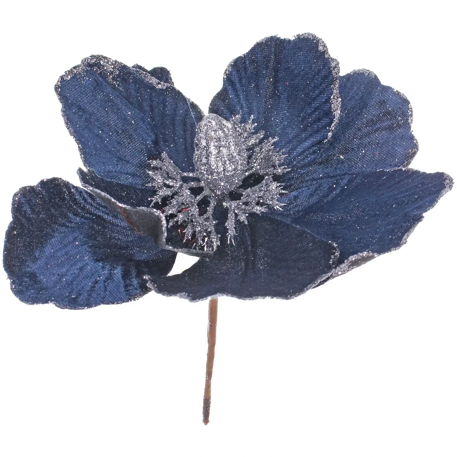 Новогоднее украшение "Пуансеттия - Волшебство", 20 см, сапфир, текстиль