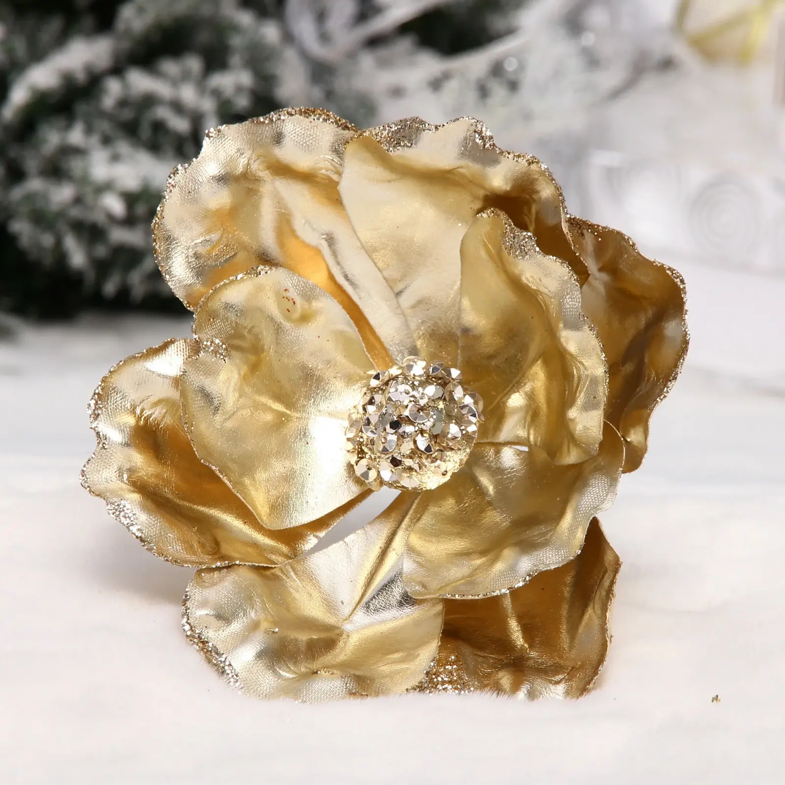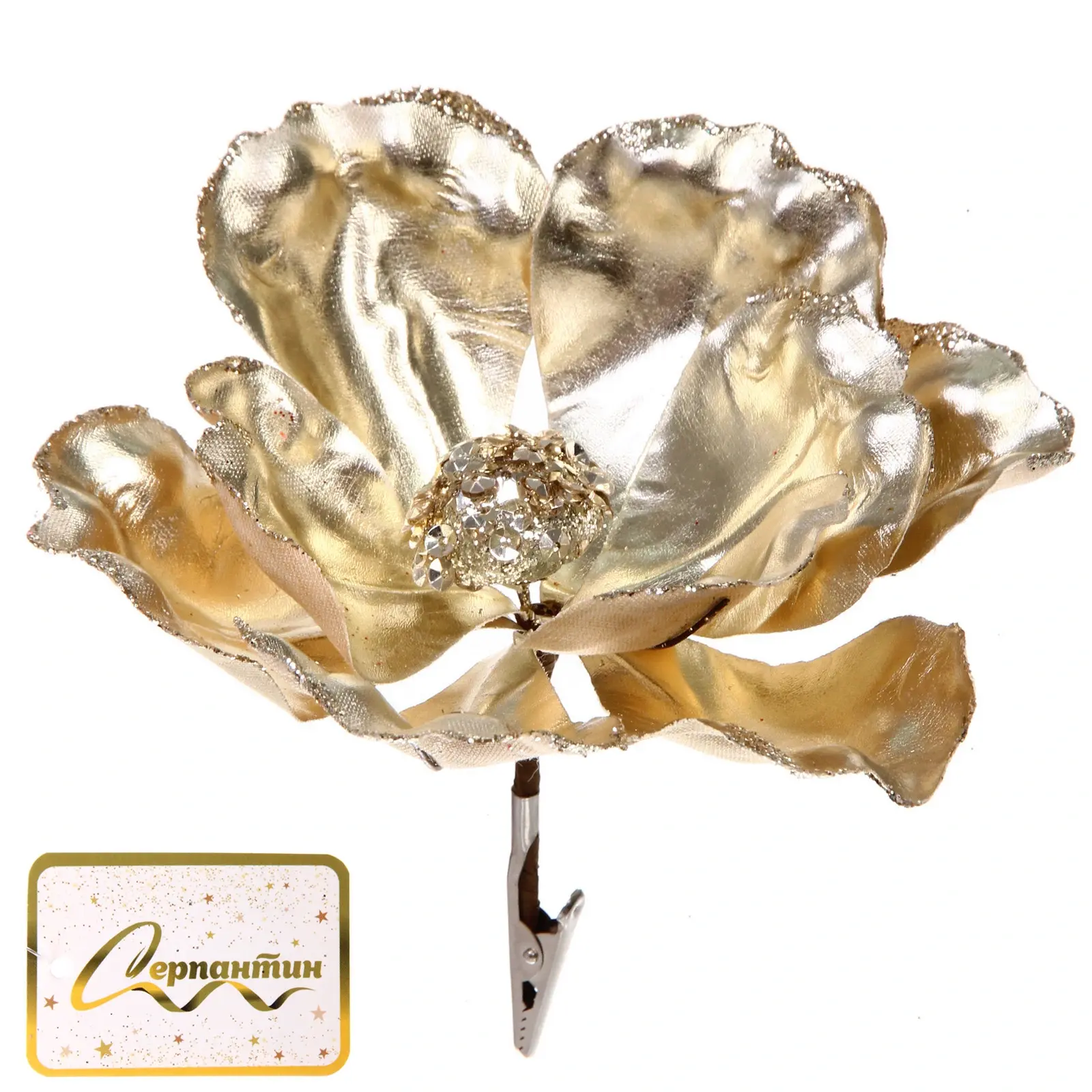 Создайте атмосферу зимней сказки с декоративным цветком «Пуансеттия – Зимний сон». Его благородный золотой оттенок и блеск кристаллов в центре привносят тепло и роскошь в каждый уголок вашего дома. Лёгкий блеск и фактурные лепестки вносят в декор ощущение праздника и уюта.
