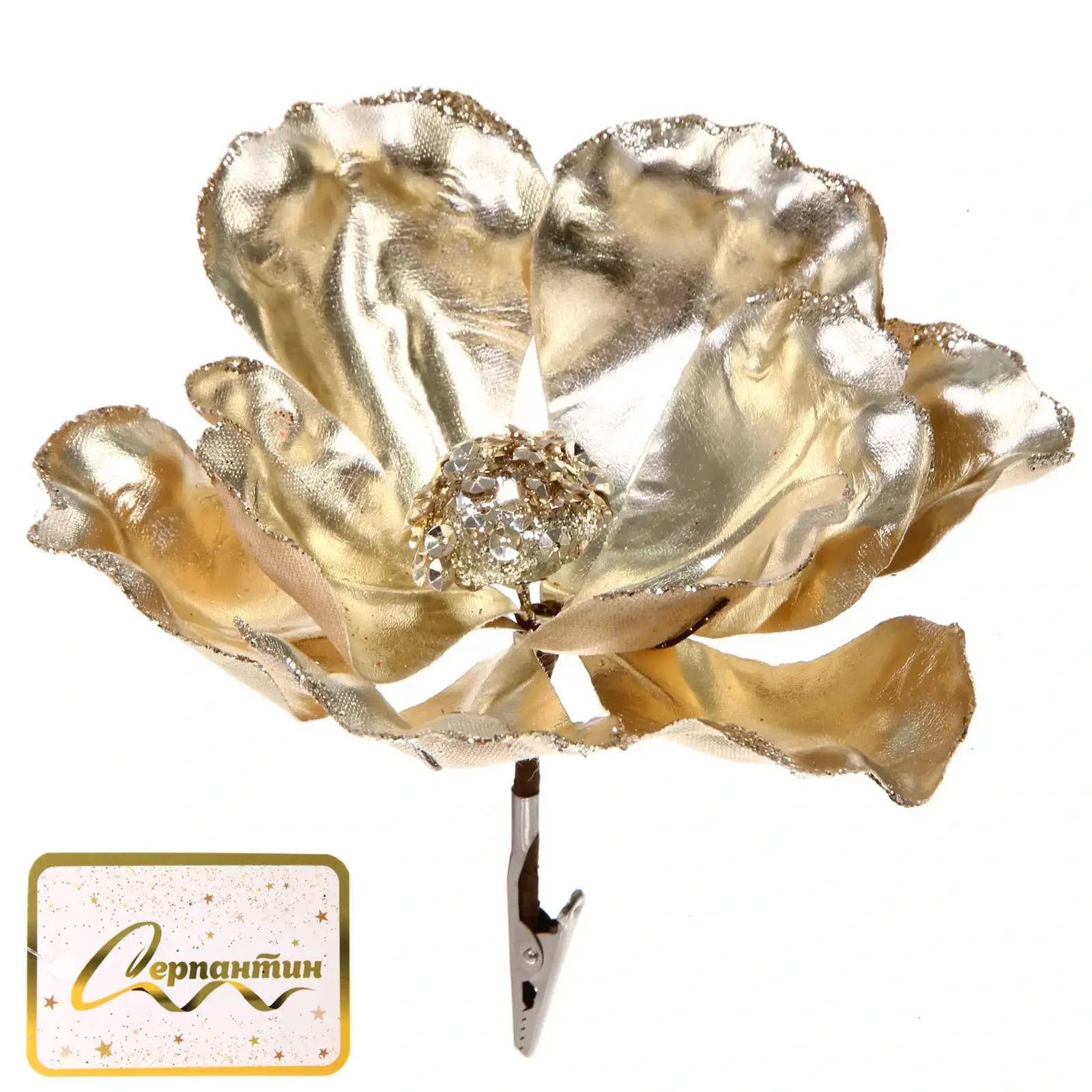 Украшение идеально подходит для оформления новогодней ёлки, венков, гирлянд или праздничных композиций. Благодаря надёжному металлическому зажиму, цветок легко крепится на ветки, текстиль, мебель или подарочные упаковки. Вы можете использовать его как часть центра стола или оформить им интерьер для фотосессии.