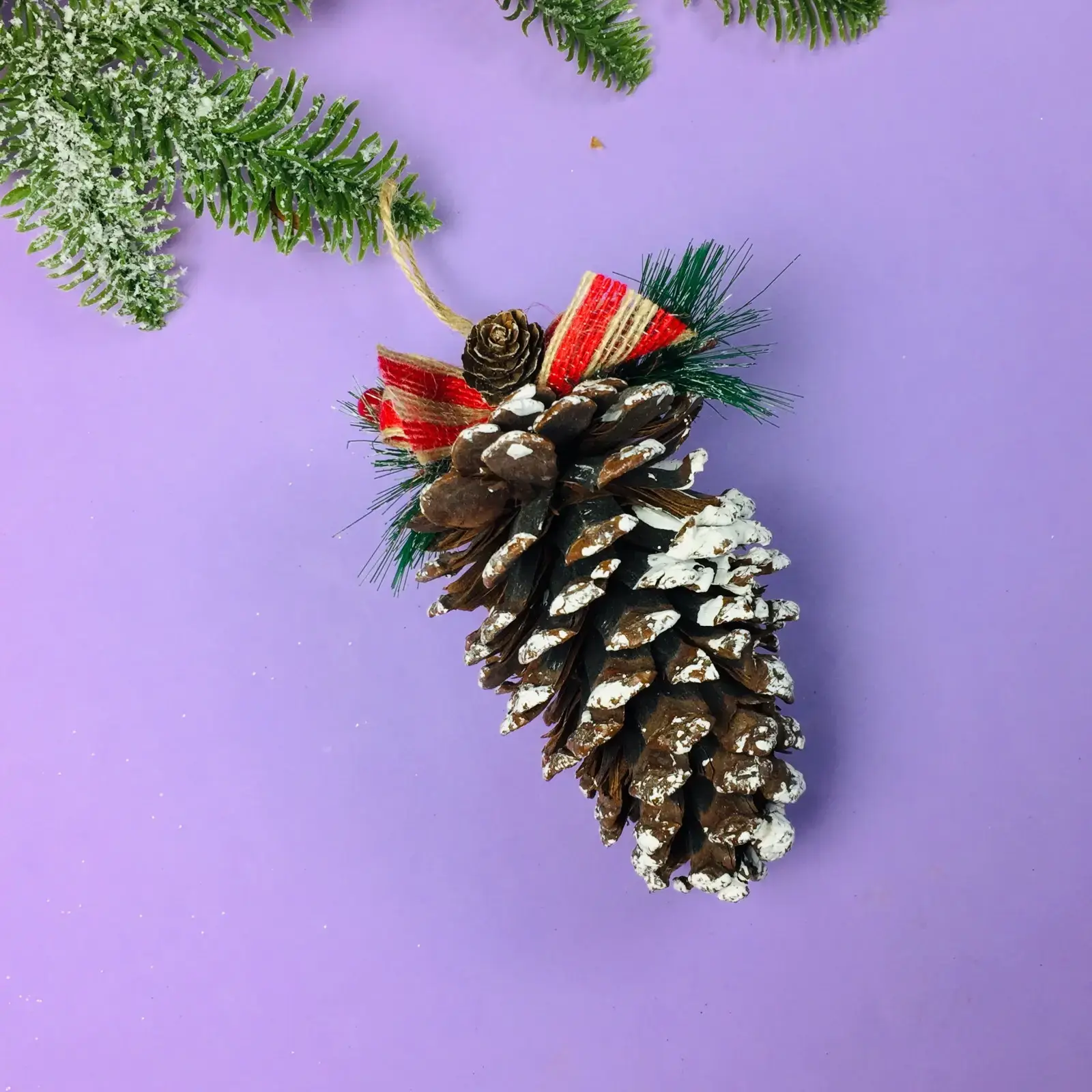 Новогоднее украшение «Шишка» — это идеальный способ добавить волшебства в ваш интерьер. С его помощью вы сможете создать уютную и праздничную атмосферу, которая порадует вас и ваших близких. Это украшение выполнено в коричневых и белых оттенках, с частичным белым покрытием, имитирующим снег, что придаёт ему особый шарм и стиль.