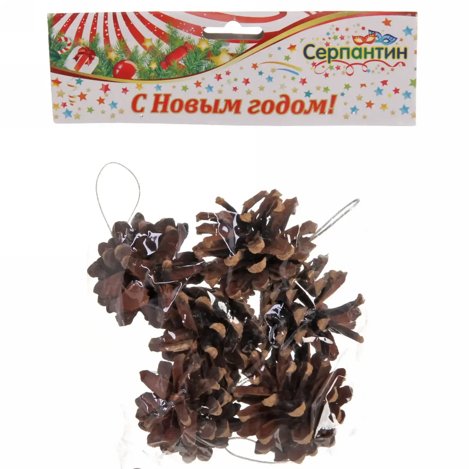 Размер каждой шишки составляет 5,5 см, что делает их компактными и удобными для использования в различных декорациях. В наборе вы получите 6 штук, что позволит вам создать полноценную композицию. Шишки имеют коричневый цвет, варьирующийся от светло-коричневого до темно-коричневого, что добавляет естественности и гармонии в ваш новогодний декор.
