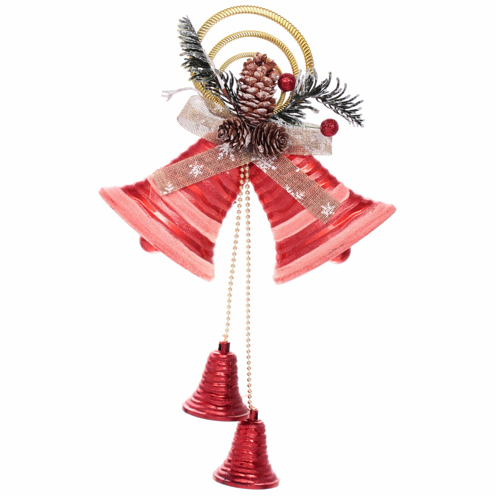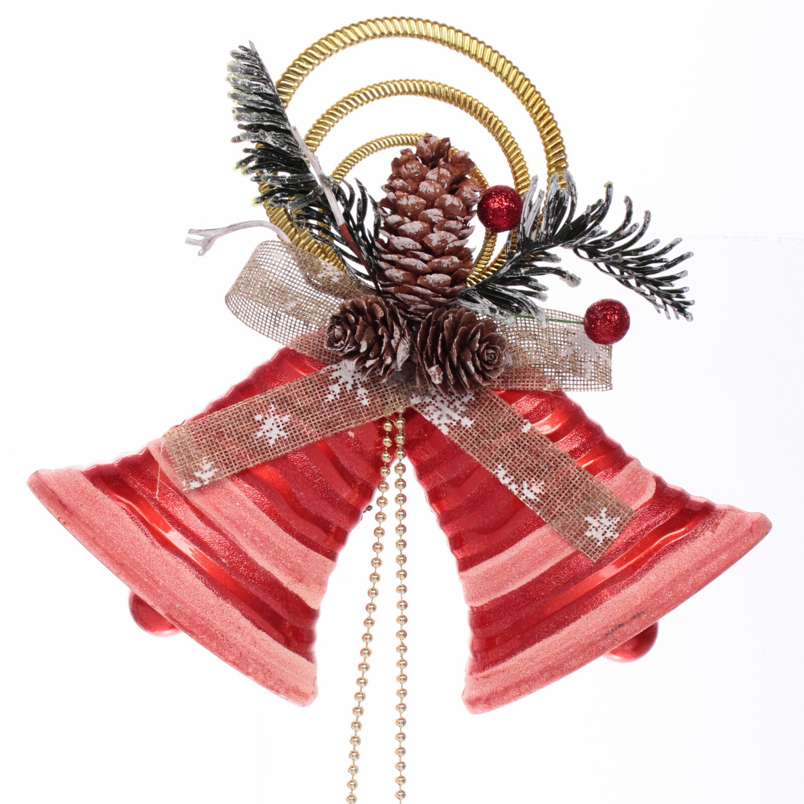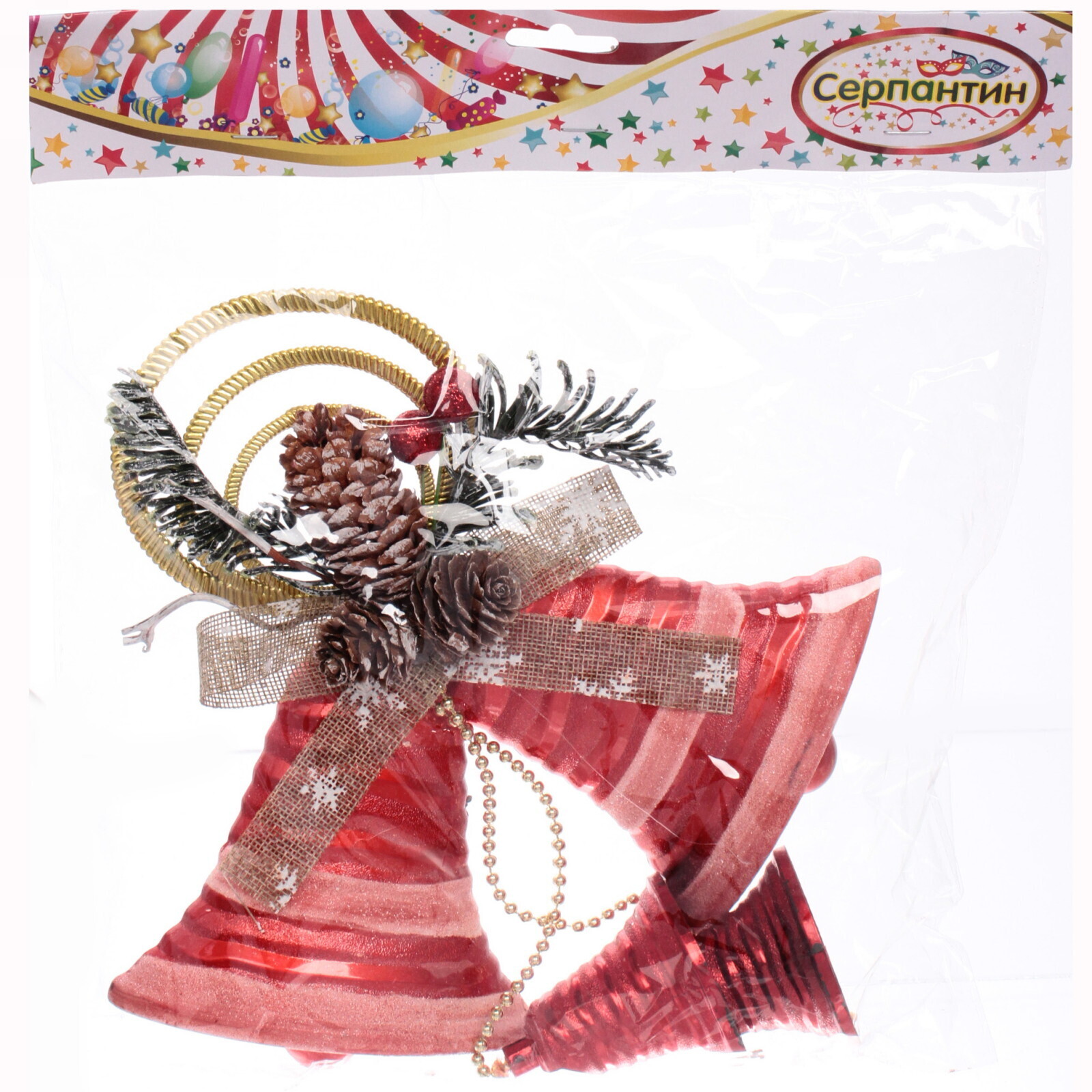 Новогоднее украшение «Сияние колоколов», 3 колокольчика, красный/белый, 43х25 см, пластик
