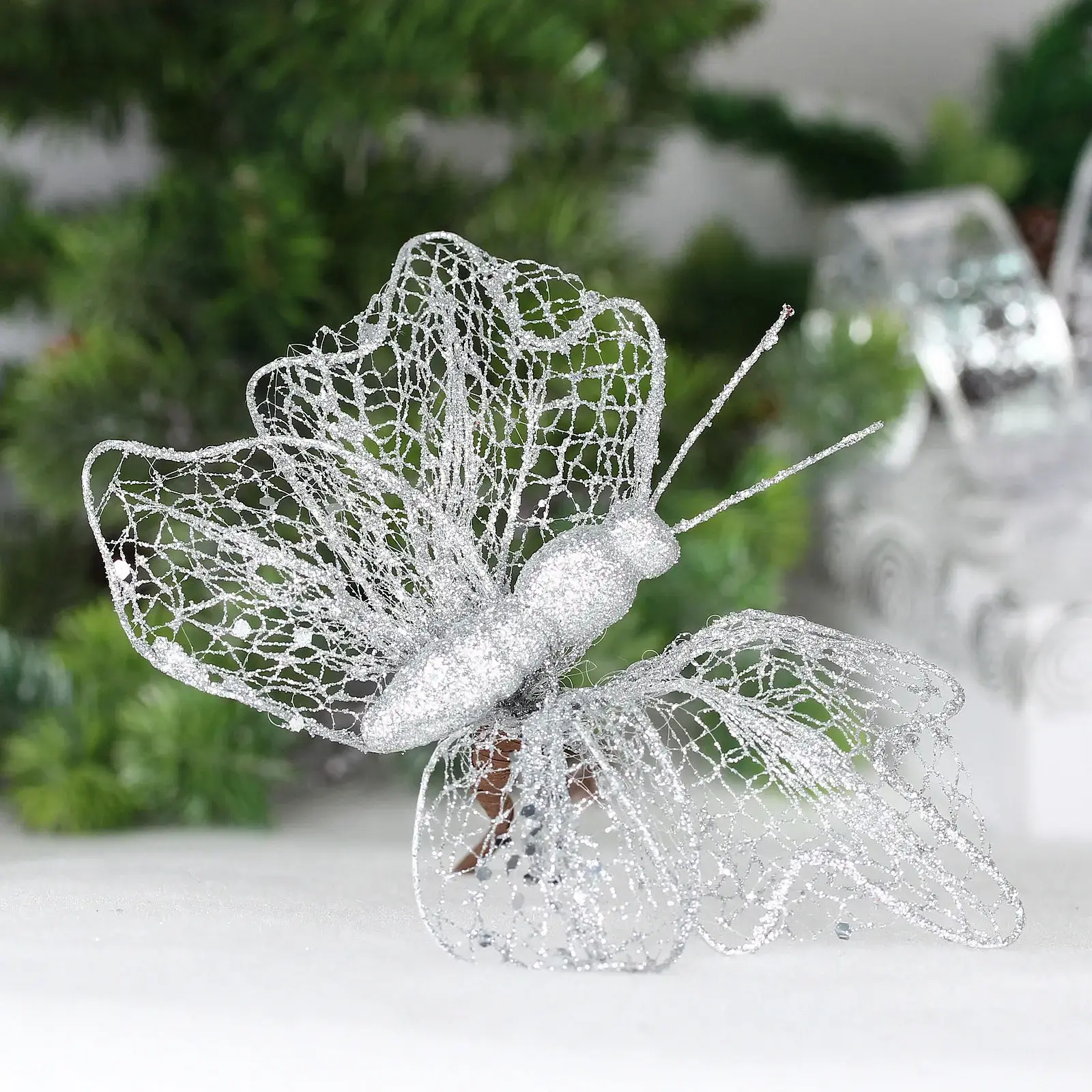 Новогоднее украшение "Сияющая бабочка" станет идеальным дополнением к вашей праздничной декорации. Благодаря уникальному дизайну и серебристому блеску, оно создает неповторимое мерцание на свету, даря ощущение настоящего праздника.