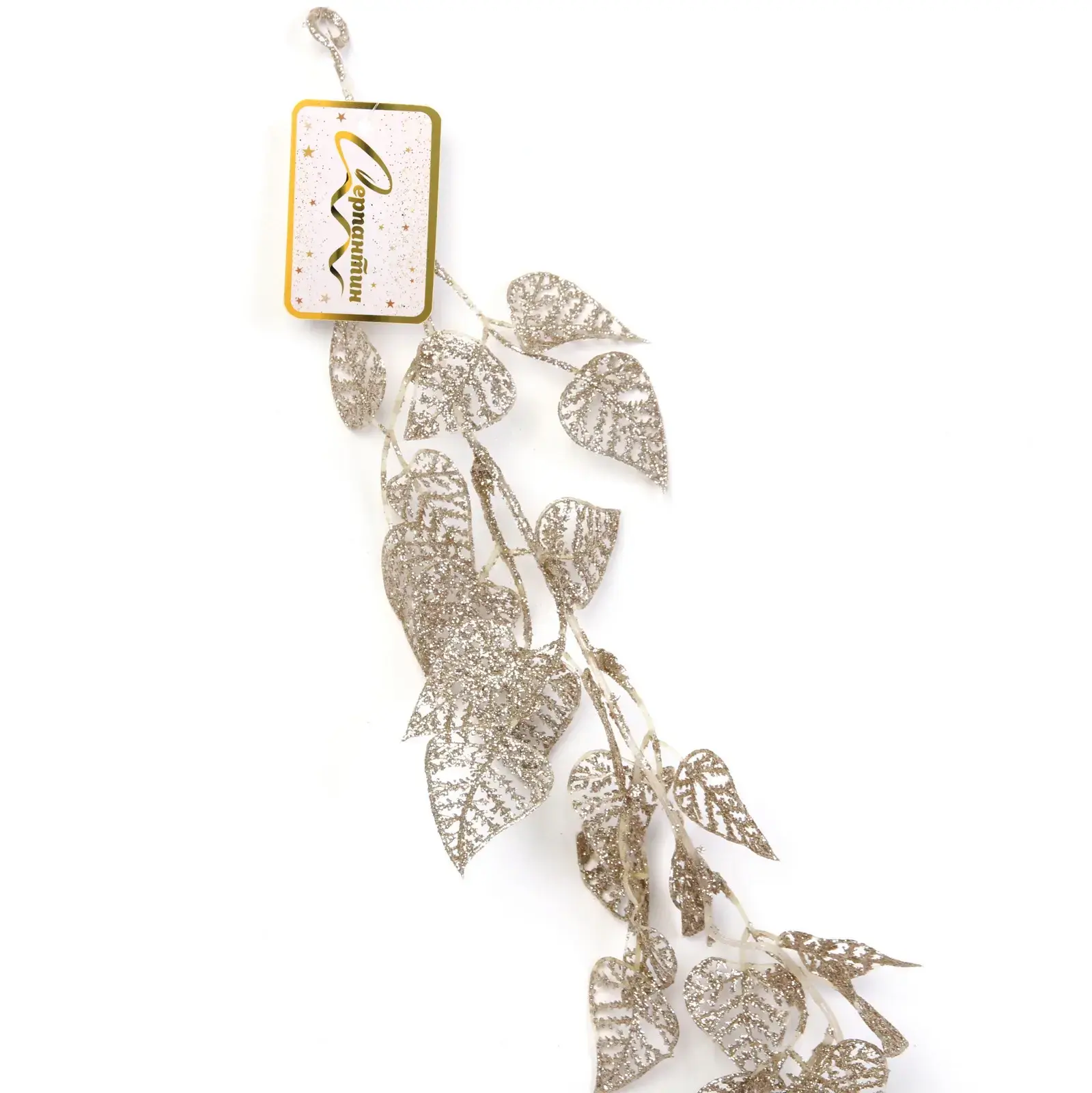 Эта гирлянда выделяется среди других благодаря своему уникальному дизайну, который включает в себя ажурные листья, создающие эффект легкости и воздушности. Золотистый цвет добавляет блеска и делает гирлянду универсальной для любого стиля интерьера. Она легко комбинируется с другими элементами декора, такими как свечи, шары и другие новогодние украшения.
