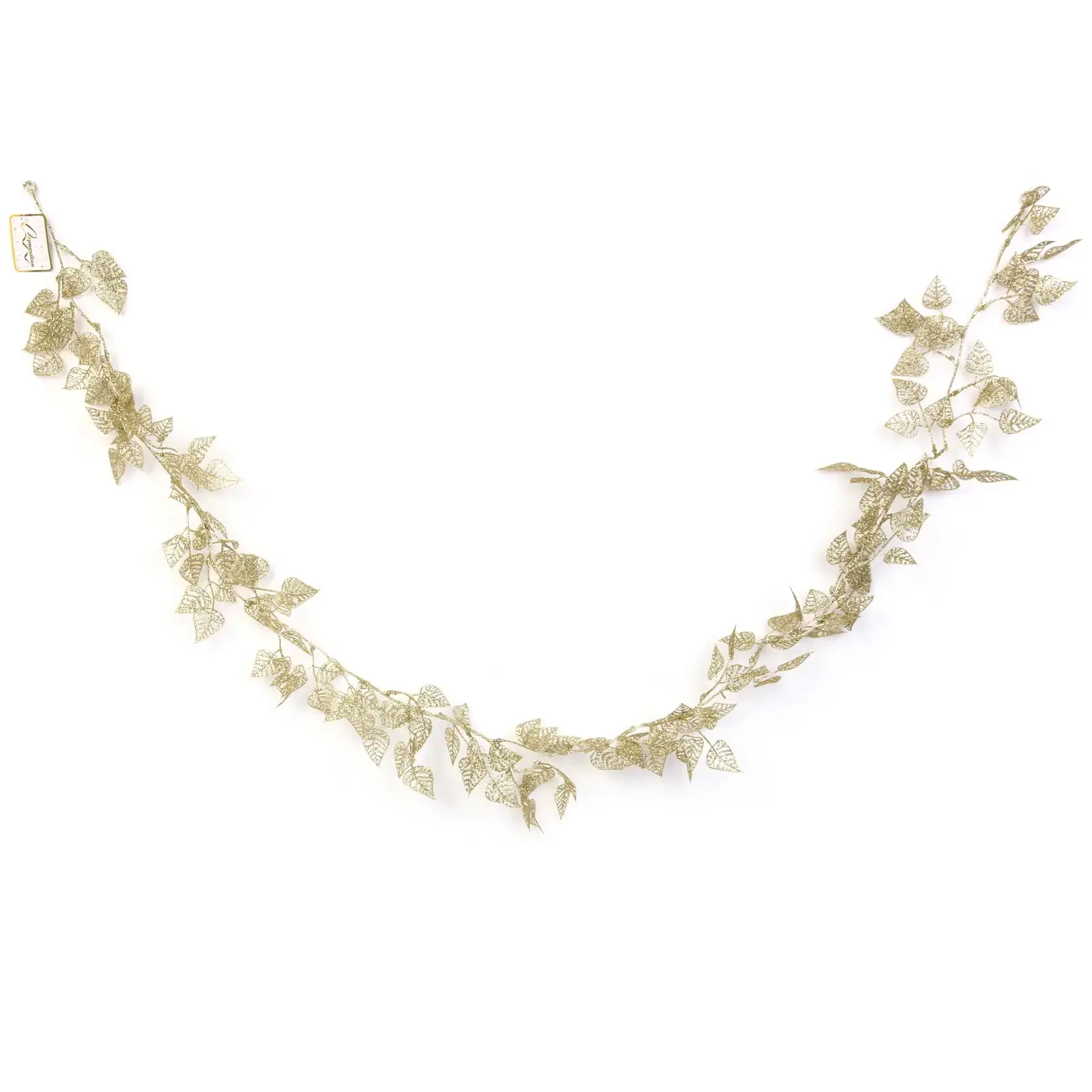 Длина гирлянды составляет 1,80 м, что позволяет использовать её в различных интерьерах. Листья выполнены в золотом цвете и имеют детализированную текстуру, что придаёт гирлянде натуральный вид. Благодаря своей универсальности, она станет отличным дополнением к любому стилю оформления.