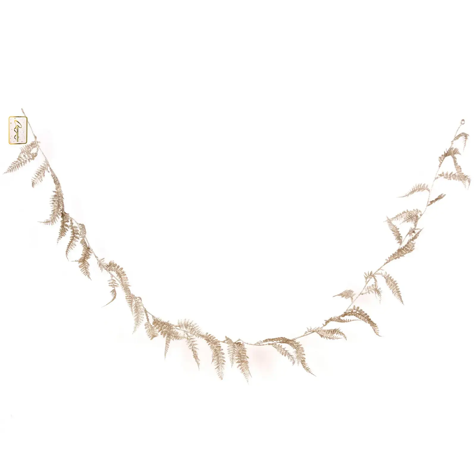 Это украшение отличается высоким качеством и долговечностью. Изготовлено из пластика, оно не потеряет своего вида даже после многократного использования. Листья гирлянды имеют натуральный вид и детализированную текстуру, что делает их похожими на настоящие. Бежевый цвет с золотистым оттенком добавляет изысканности и стиля, а возможность комбинирования с другими элементами декора позволяет создавать уникальные композиции.