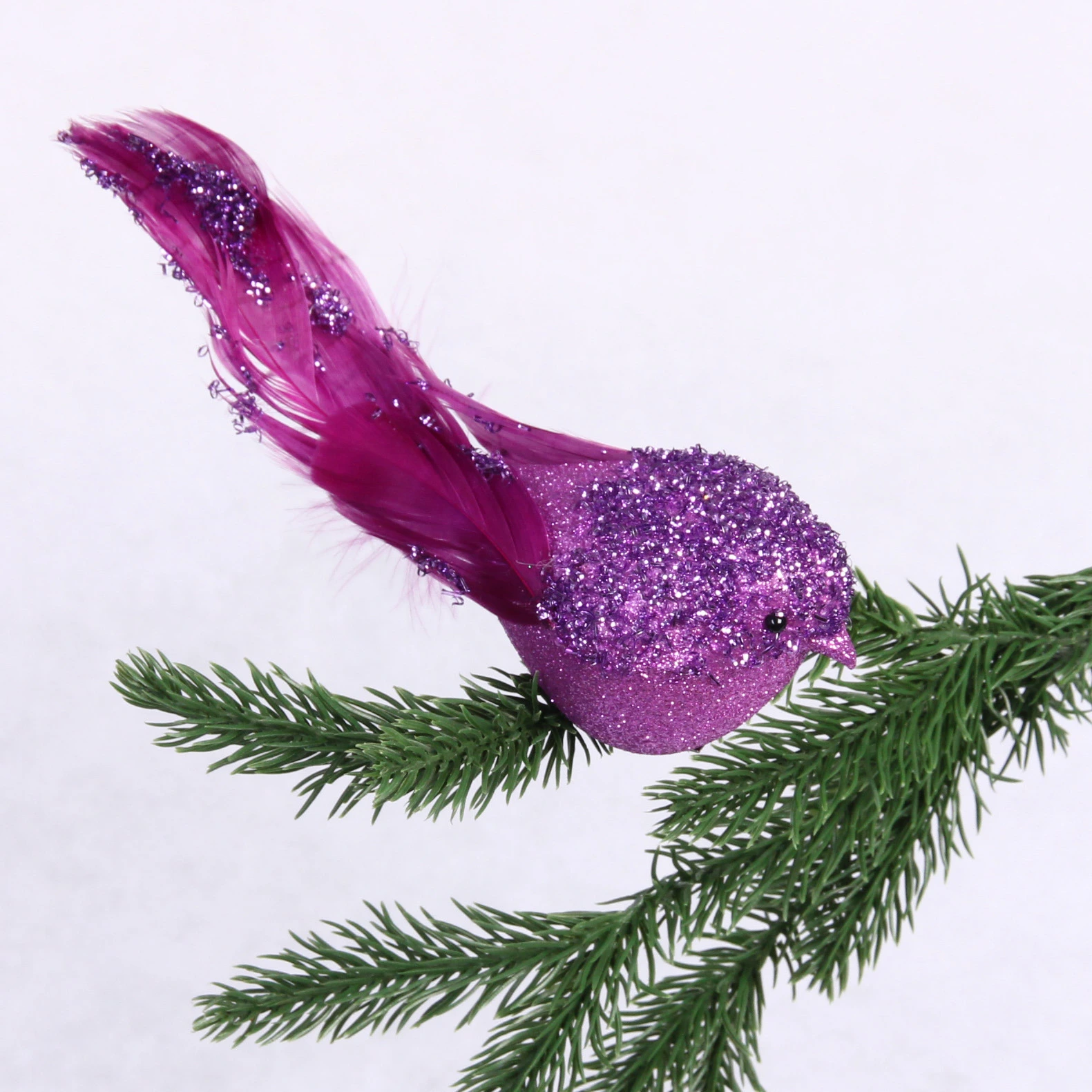 Новогоднее украшение "Сказочная птица", 5*7*18см, фиолетовый, с блестками