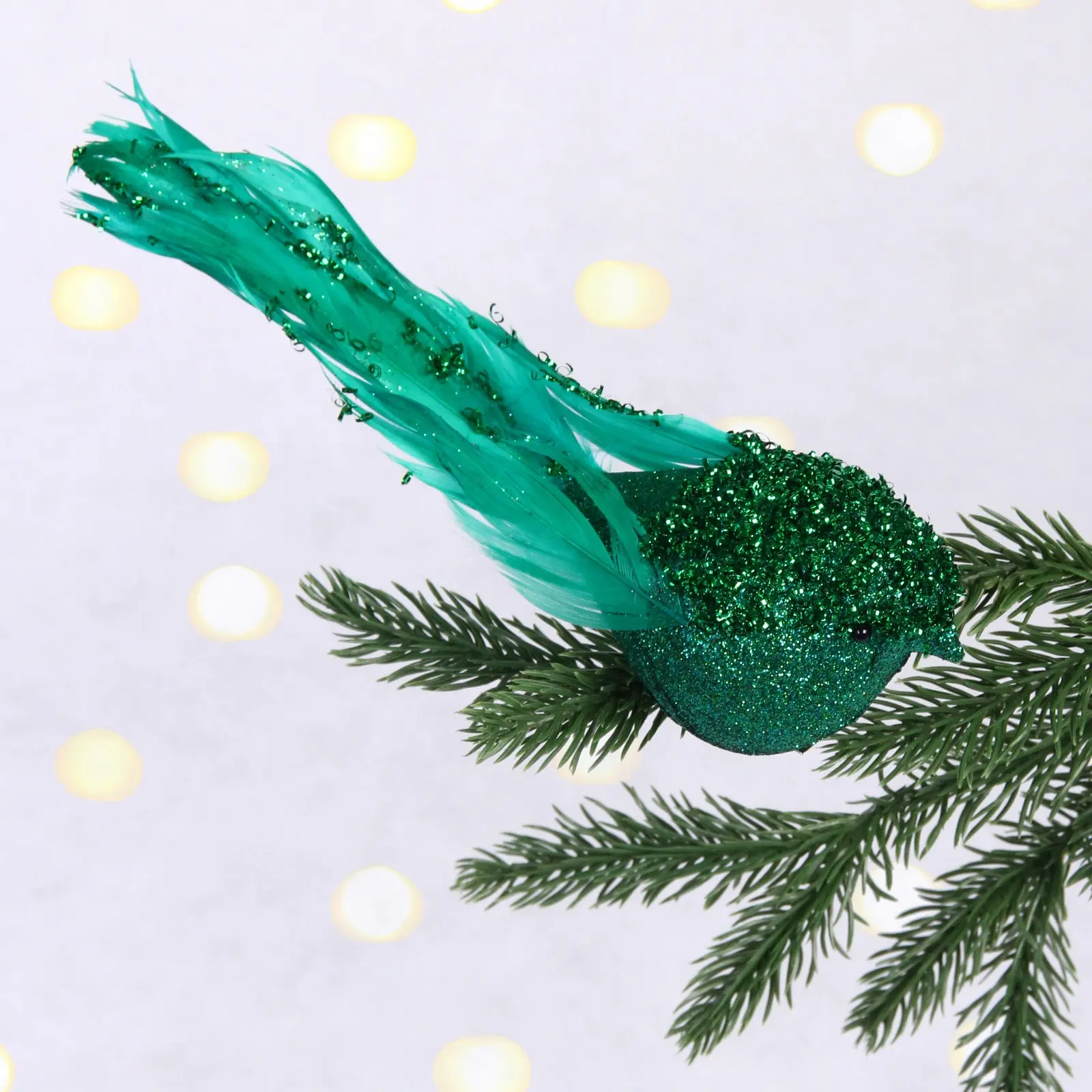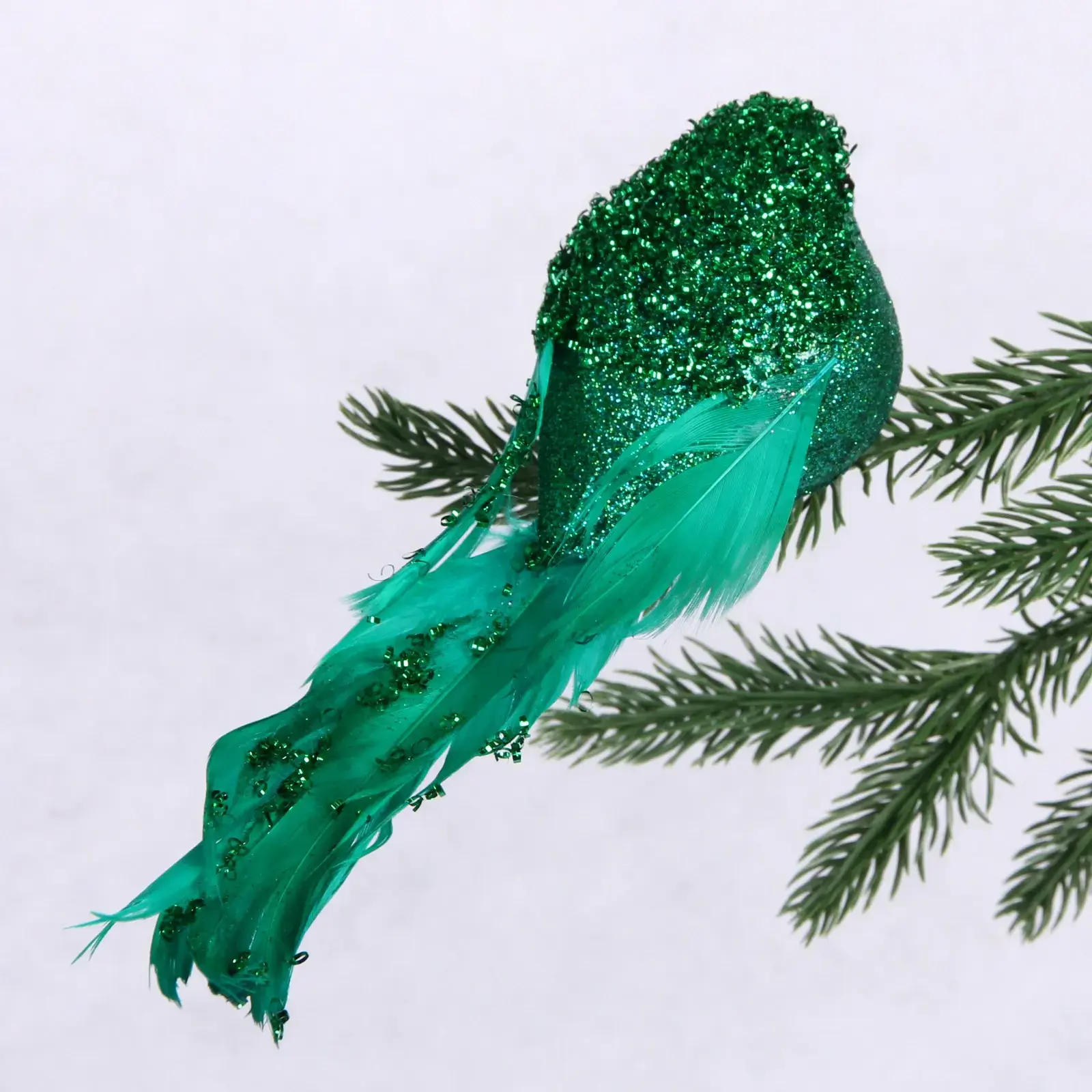 Украшение «Сказочная птица» станет ярким акцентом вашей новогодней елки и создаст неповторимую праздничную атмосферу. Благородный изумрудный цвет с золотистым отливом привлекает взгляды и радует глаз.