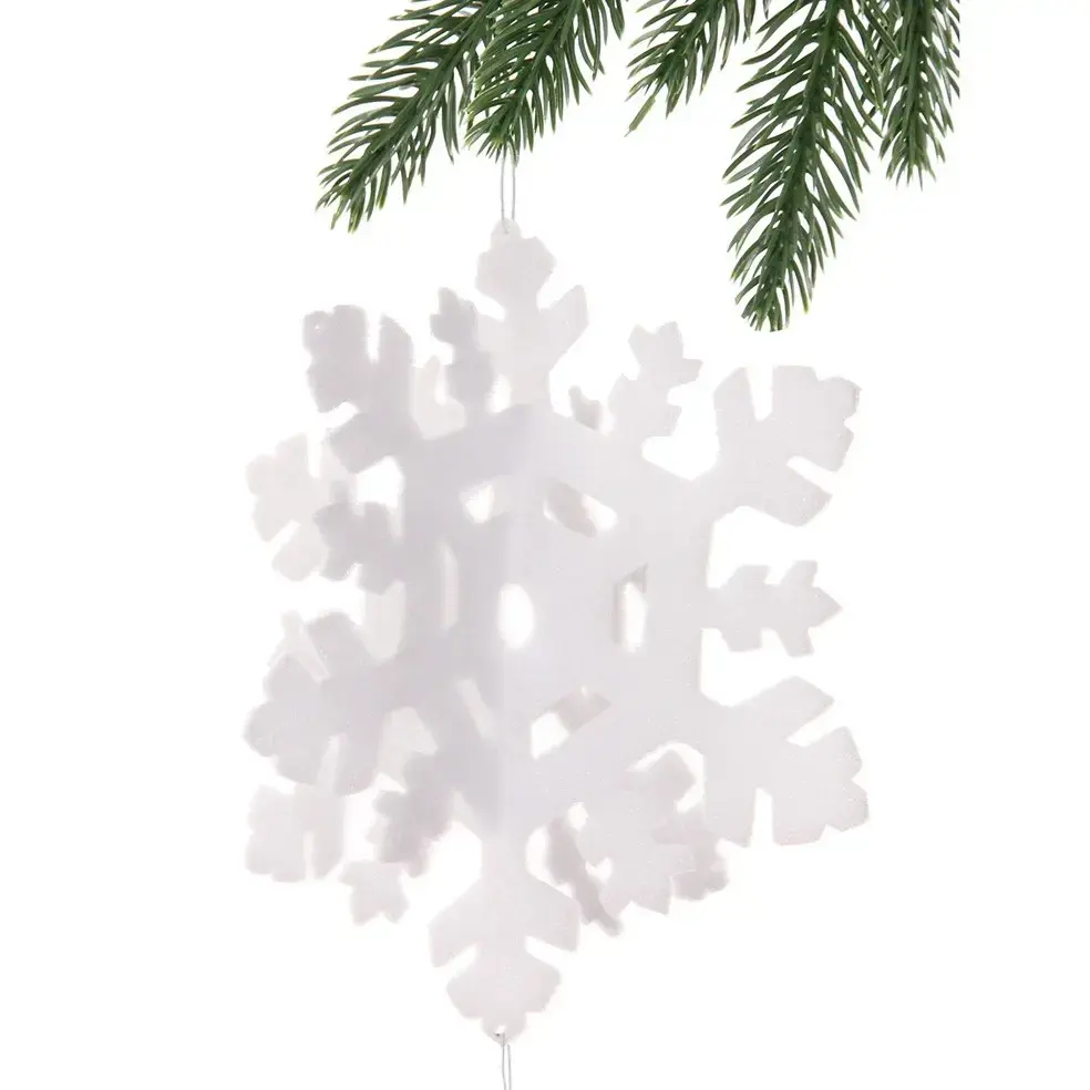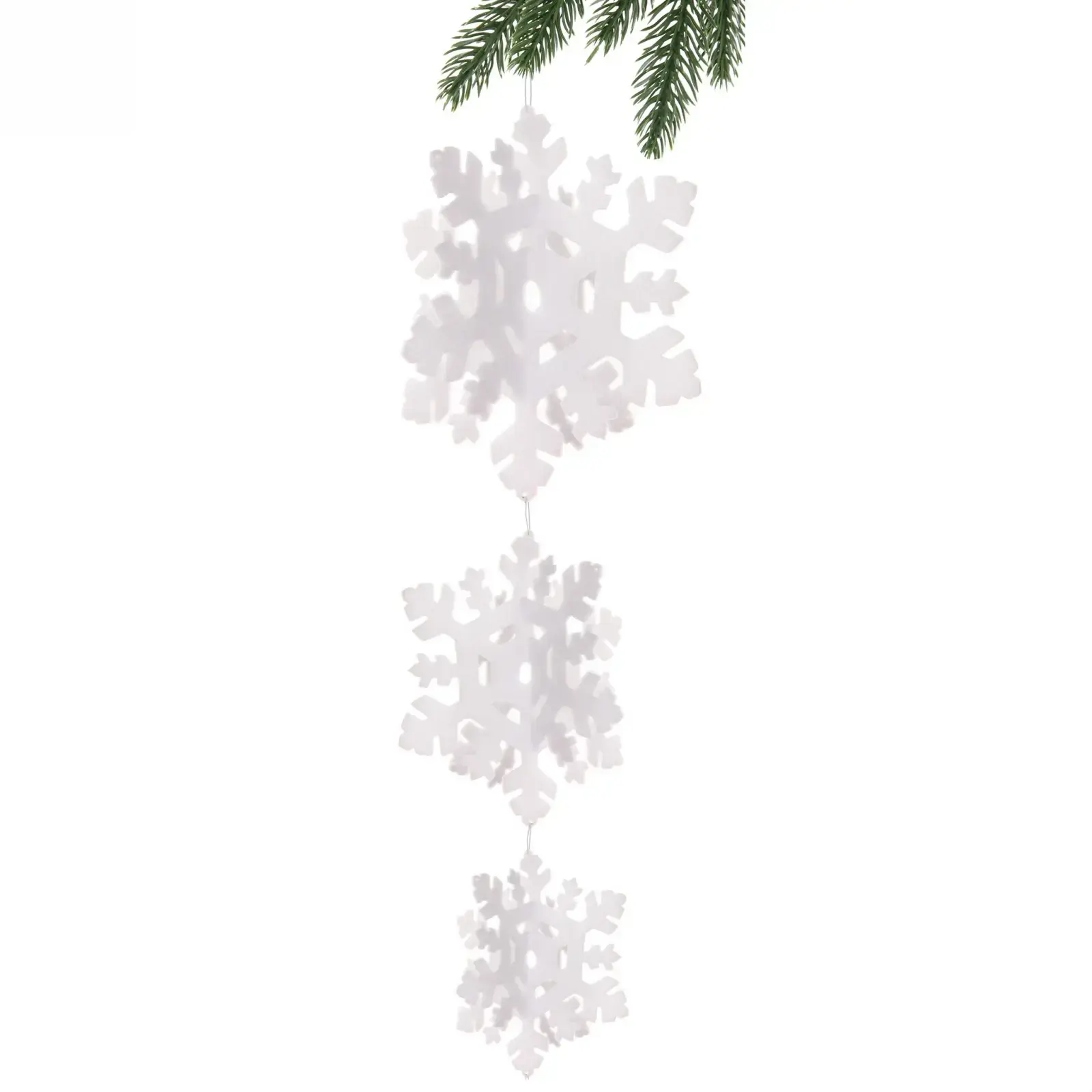 Размеры снежинок составляют d20, d16 и d12 см, что делает их заметными, но не слишком громоздкими. Белый цвет и симметричный узор придают им изысканный вид, а использование ПВХ обеспечивает долговечность и легкость. Эти снежинки станут отличным дополнением к вашему новогоднему декору и создадут атмосферу уюта и тепла в вашем доме.