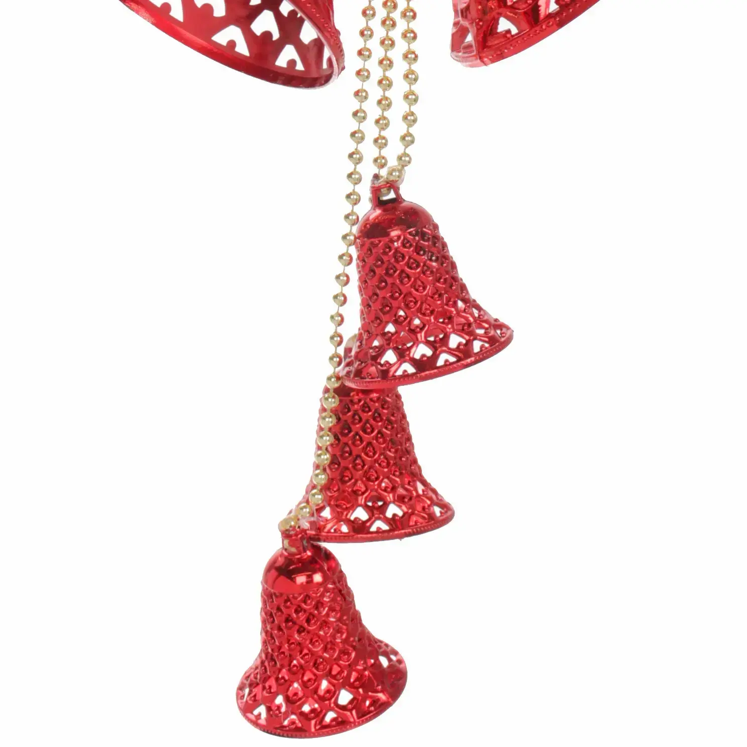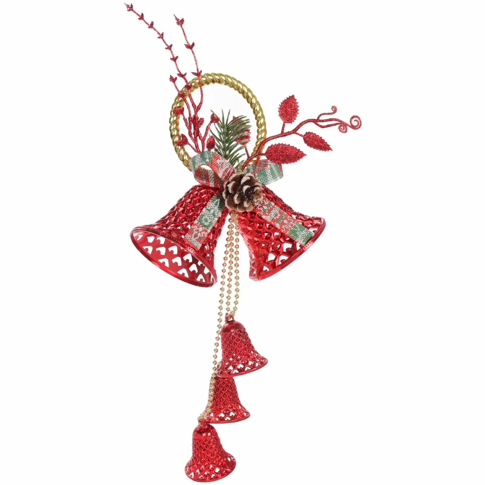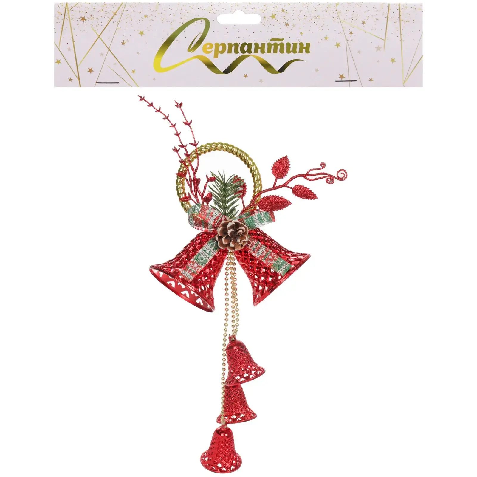 Это украшение выполнено из качественного пластика, что обеспечивает его долговечность и устойчивость к повреждениям. Красный цвет с металлическим блеском добавляет изысканности, а декоративные элементы, такие как зелёные веточки и шишки, делают его ещё более привлекательным. «Весёлый звон» легко крепится и может быть использован как в помещении, так и на улице, что делает его универсальным решением для любого праздника.