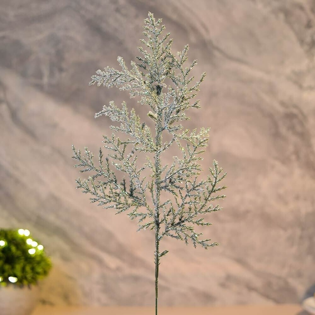 Добавьте в праздничный интерьер утончённый штрих зимней сказки с искусственной веткой высотой 25 см, выполненной в белом цвете с нежным покрытием, имитирующим иней и мягкое мерцание снега. Её изящная форма и блестящие детали создают атмосферу уюта и радости, делая каждый уголок дома ещё теплее.
