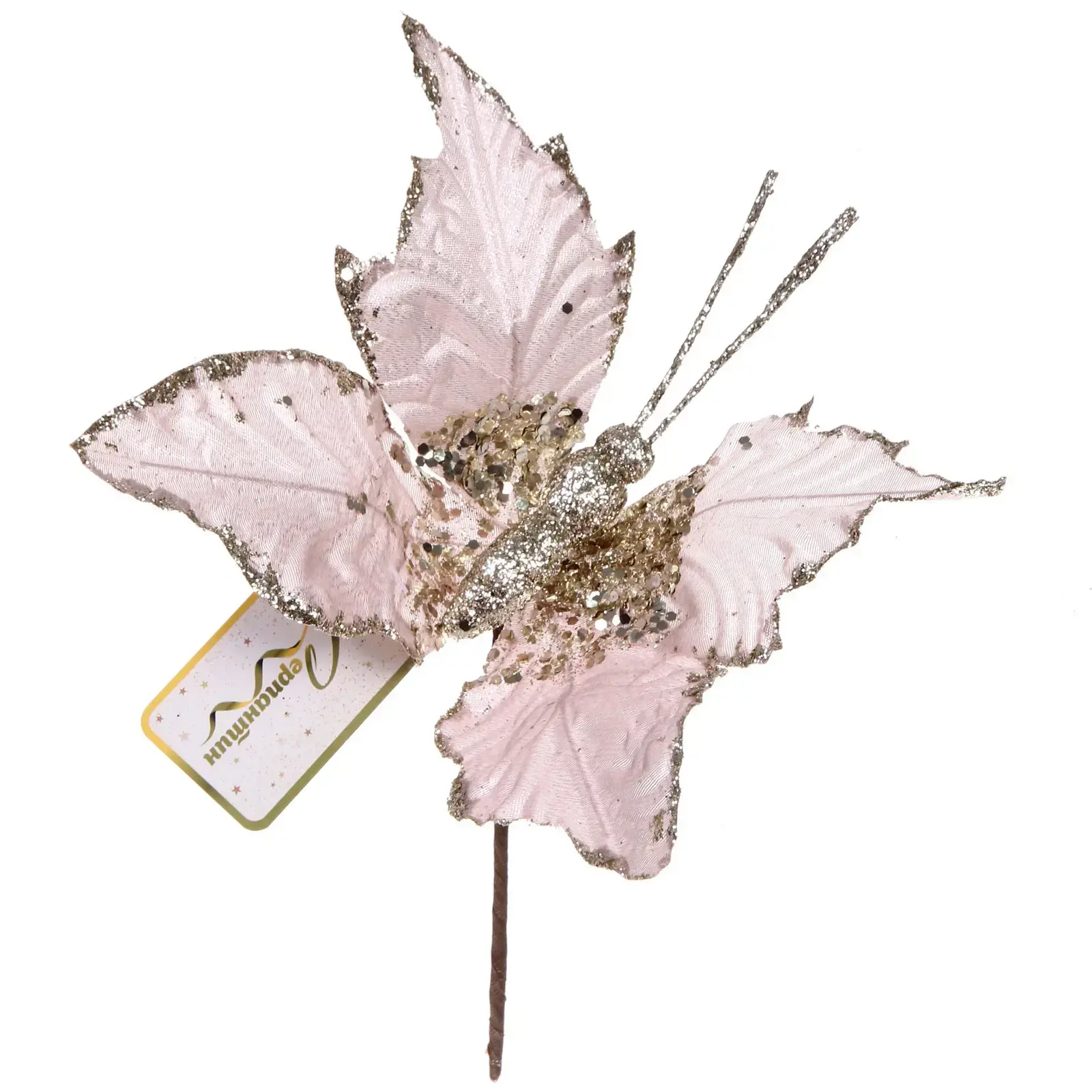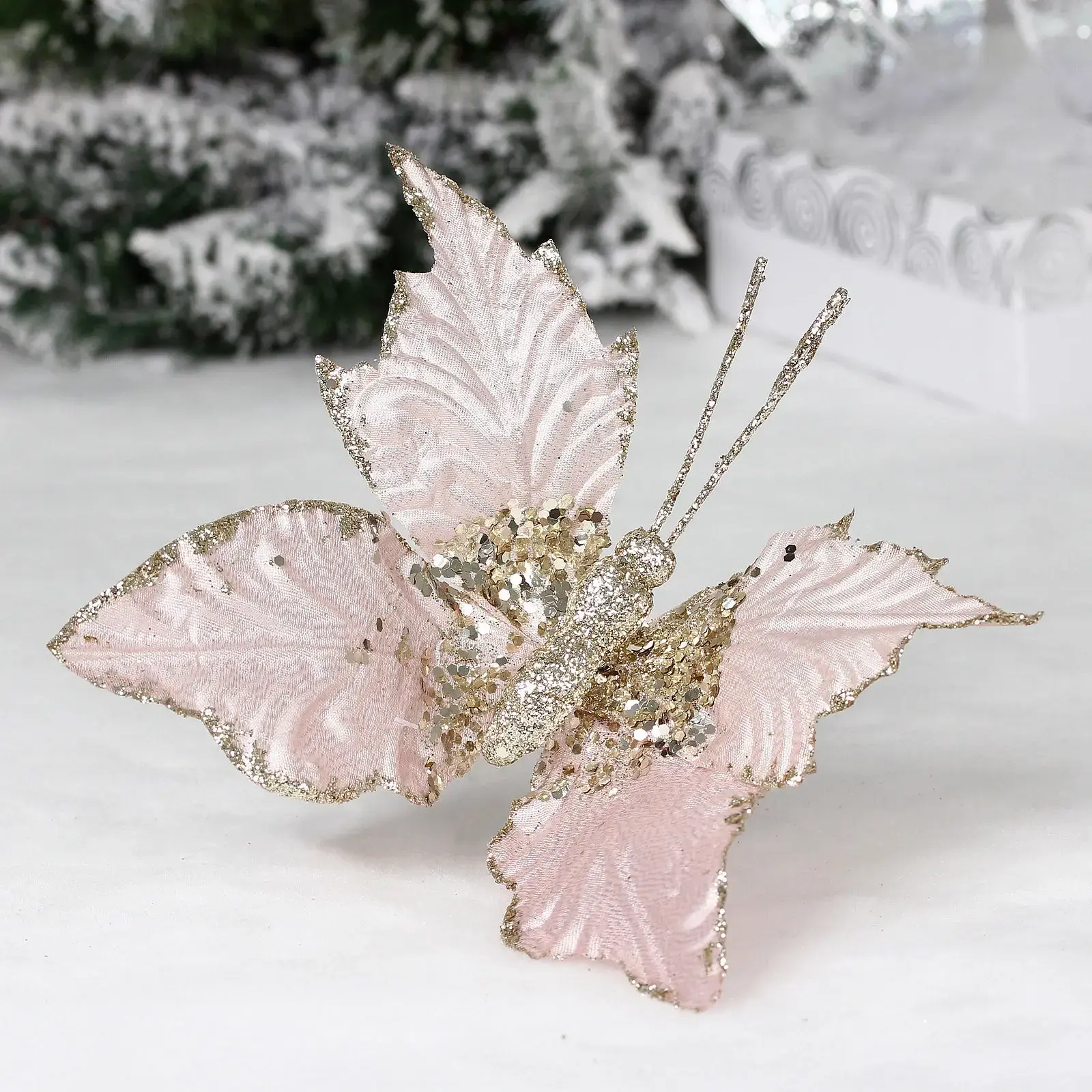 Украшение новогоднее 'Волшебная бабочка' 24*14 см, розовый/шампань, пластик/текстиль