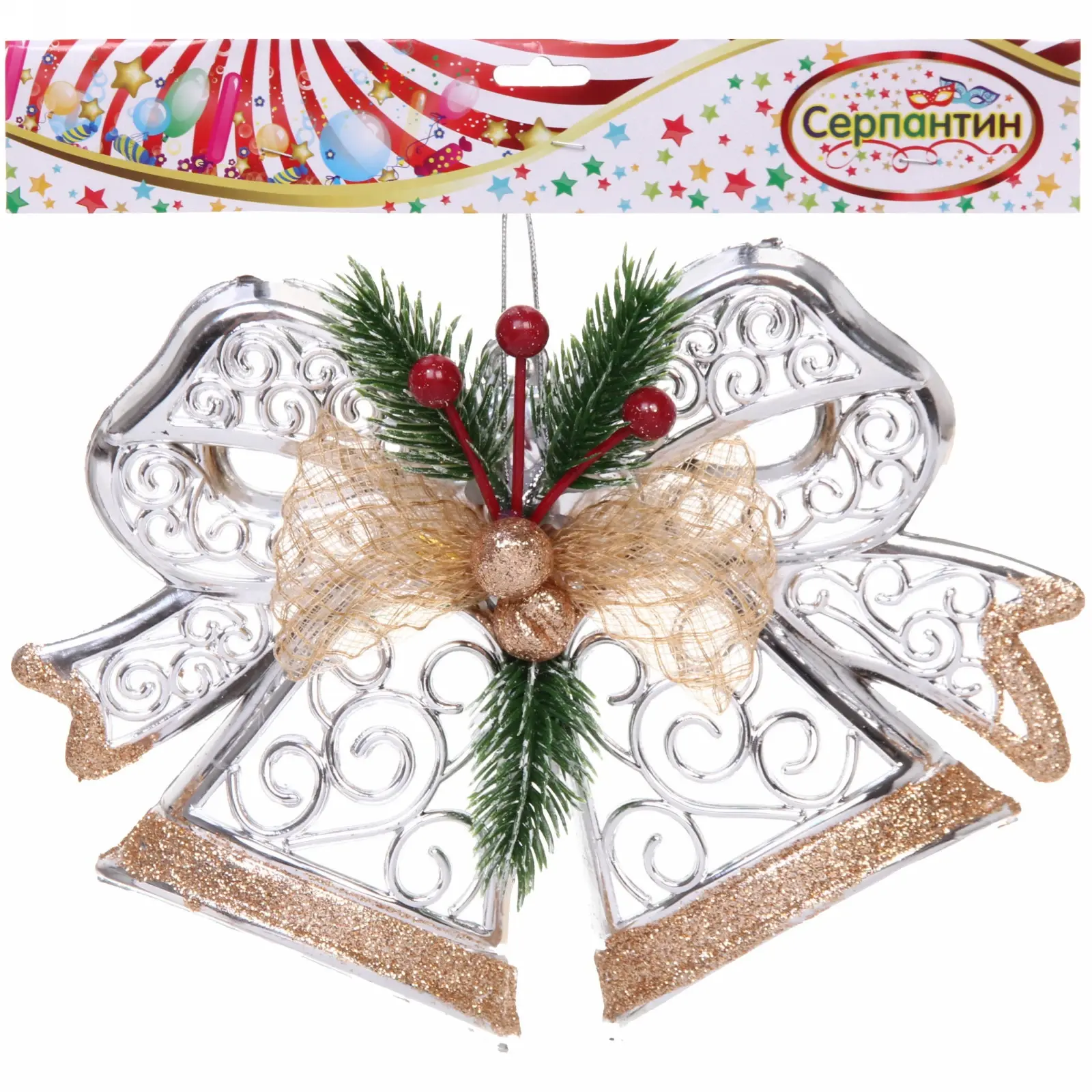 Изготовитель – Hua Sheng Industrial Co., LTD, бренд «Серпантин». Цветовое решение – сочетание серебристого, шампанского, золотистого, зелёного и красного, что делает изделие ярким акцентом даже в минималистичном оформлении. Уход прост: просто протирайте мягкой тканью от пыли, и украшение будет радовать вас долгие годы.