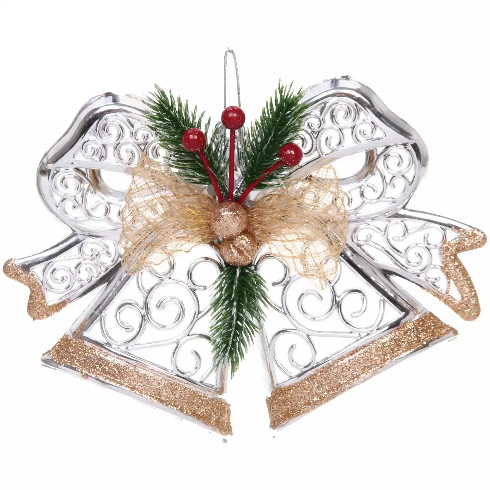 Это украшение «Яркие краски зимы» мгновенно преобразит любой интерьер, наполняя его сиянием серебра и шампанского, а яркие золотистые и красные акценты добавят нотку праздничного тепла. Ваша гостиная, ёлка или окно заиграют новыми красками, делая праздник незабываемым.