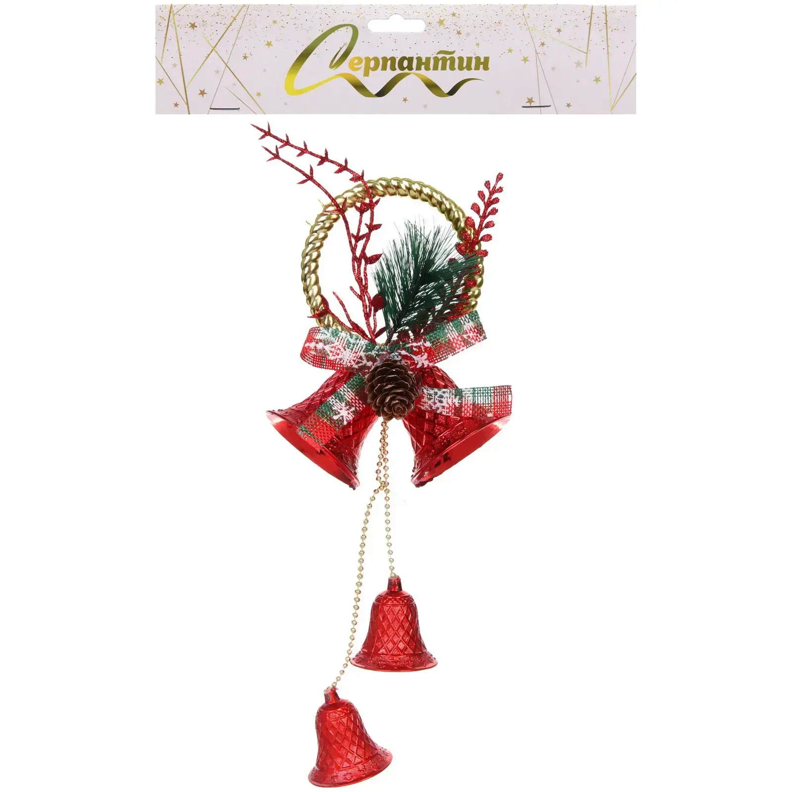 Размеры украшения составляют 32 см в высоту и 11 см в ширину, что делает его заметным, но не слишком громоздким. Красный цвет колокольчиков прекрасно сочетается с зелеными веточками и золотыми элементами, создавая гармоничное сочетание. Это украшение станет отличным дополнением к вашему новогоднему декору и подарит вам и вашим близким незабываемые моменты праздника.