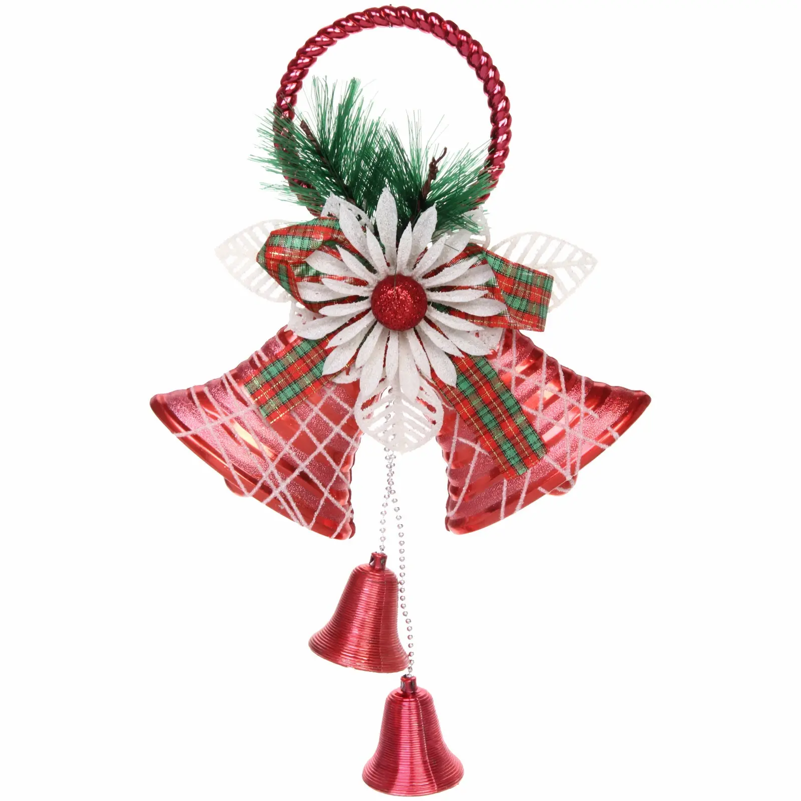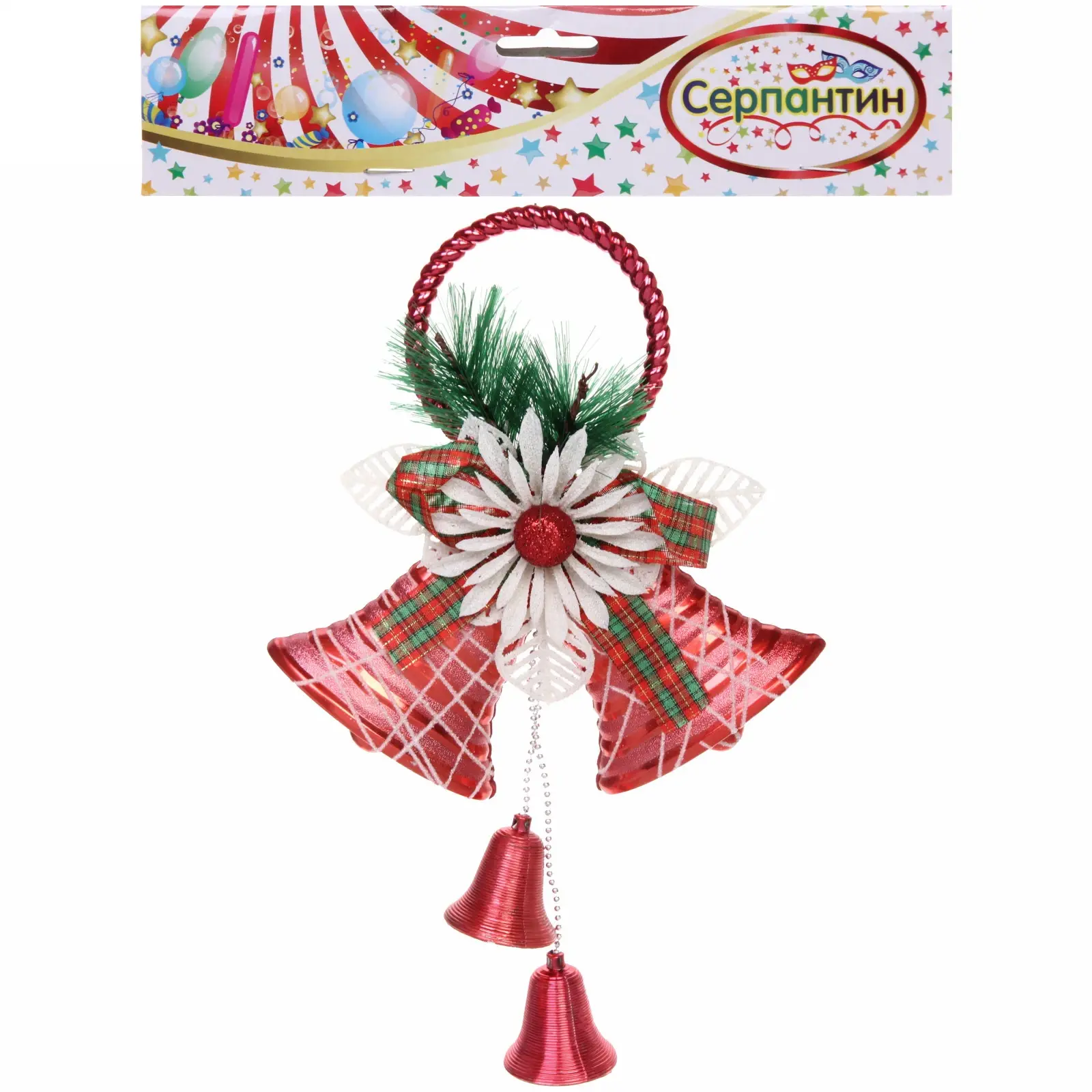 Размеры украшения составляют 30х19 см, что делает его заметным, но не слишком громоздким. Красный цвет колокольчиков дополнен зелеными веточками и белыми цветами, что создает гармоничное сочетание. Эти колокольчики станут отличным дополнением к вашему новогоднему оформлению и подарят вам и вашим близким радость и хорошее настроение в праздничные дни.