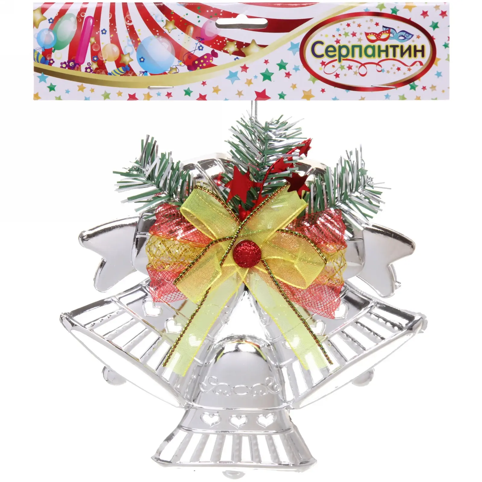 Колокольчик новогодний 'Звонкое трио', 17,5*20см, серебро/красный