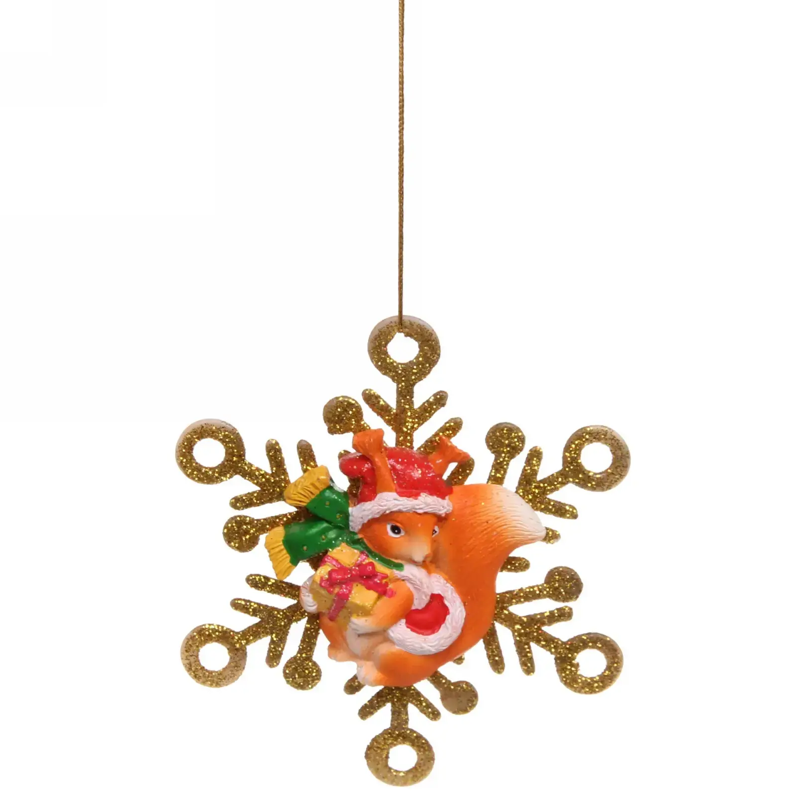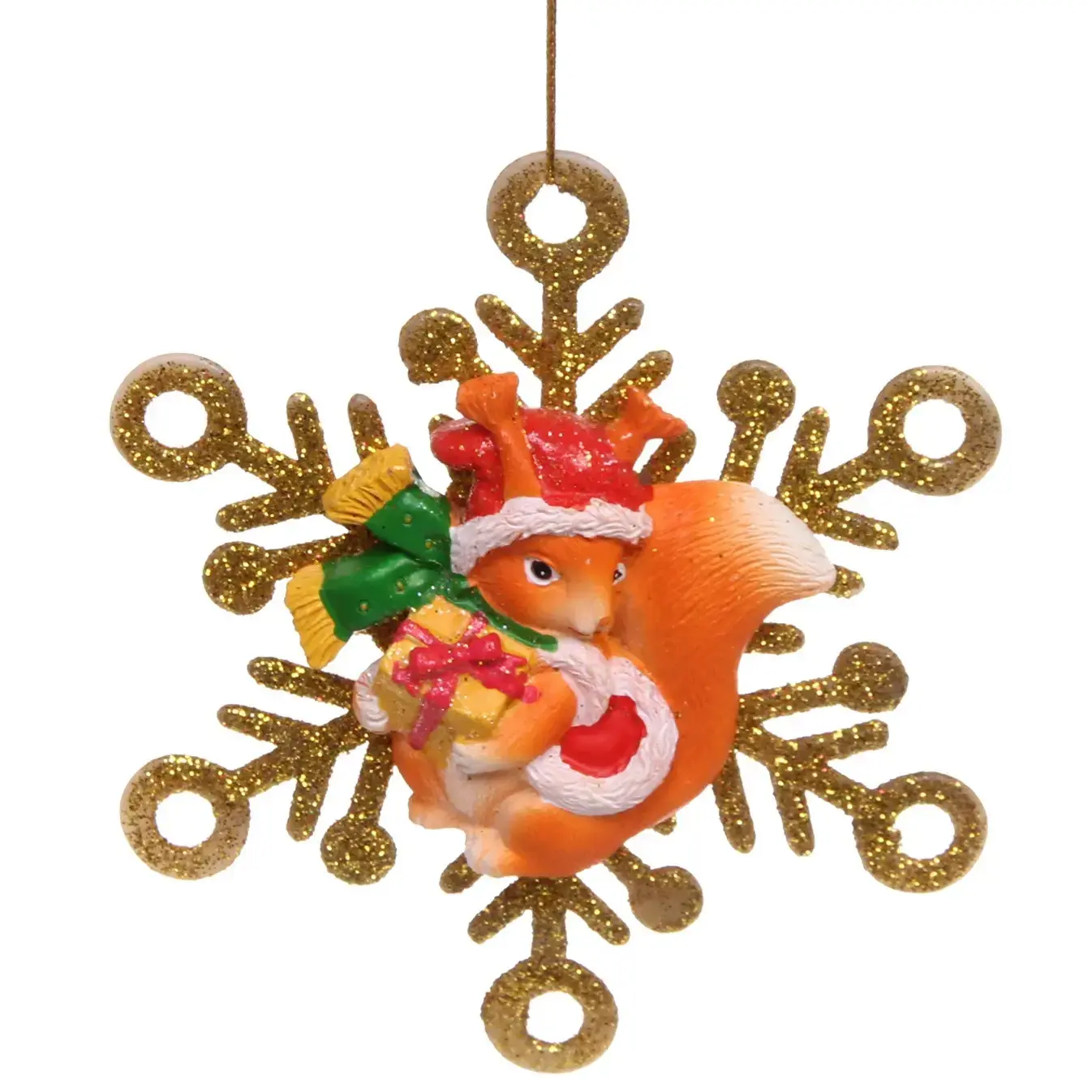 Подвесное украшение 'Белочка в снежинке', 11x11см, полирезина, золотой/красный