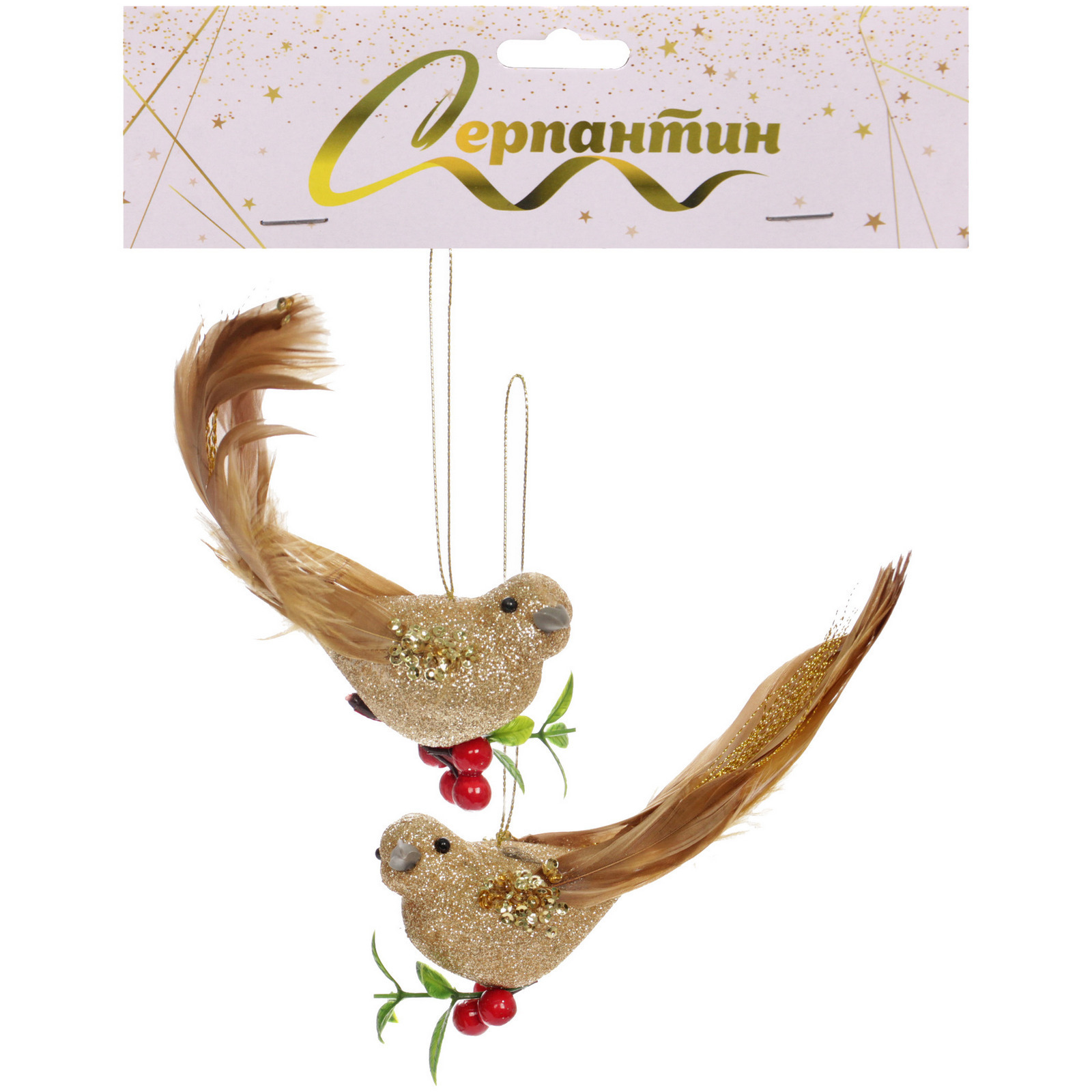 Размеры каждой птички составляют 18х4,5х4 см, что делает их компактными и удобными для размещения. Благодаря использованию блестящих элементов, украшение будет привлекать внимание и радовать глаз. Не упустите возможность добавить это великолепное изделие в свою коллекцию новогодних украшений!
