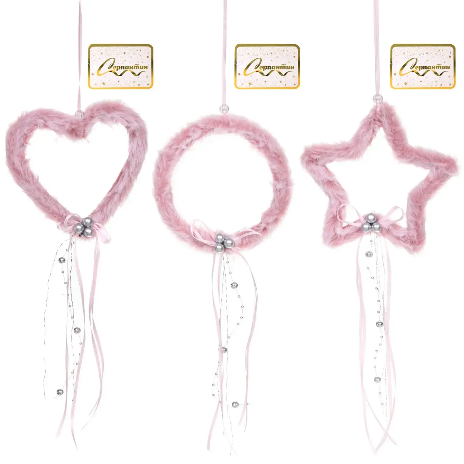 Подвесное украшение «Сказочные фигуры» — это идеальный способ добавить нотку волшебства в ваш интерьер или праздничное оформление. Выполненное в нежном розовом цвете, это украшение станет ярким акцентом в любом пространстве, создавая атмосферу уюта и радости.
