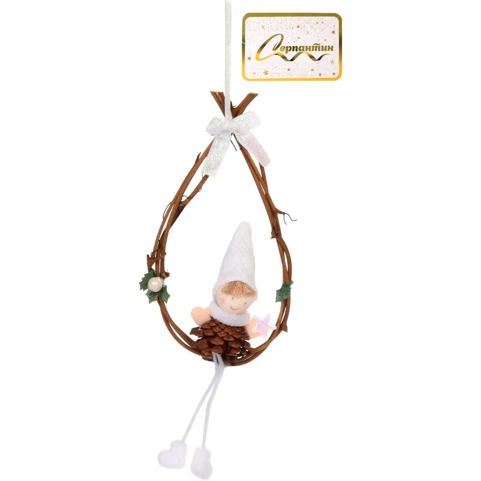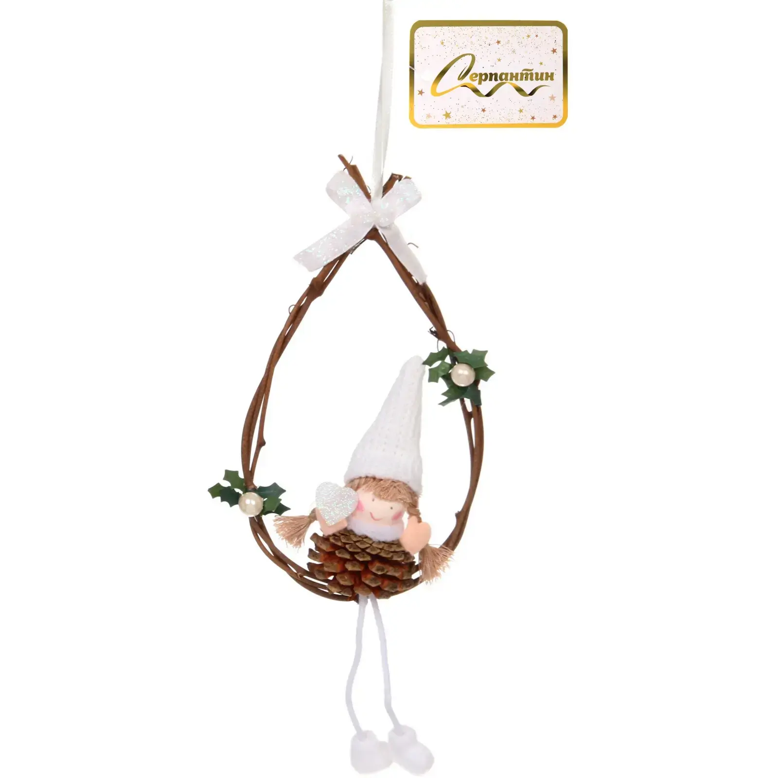 Размеры: 22 см. Материалы: пластик и текстиль. Белый цвет украшения придаёт ему свежесть и легкость, а также позволяет легко сочетать с другими цветами и стилями. Это изделие станет отличным подарком для ваших близких или прекрасным дополнением к вашему собственному праздничному декору.