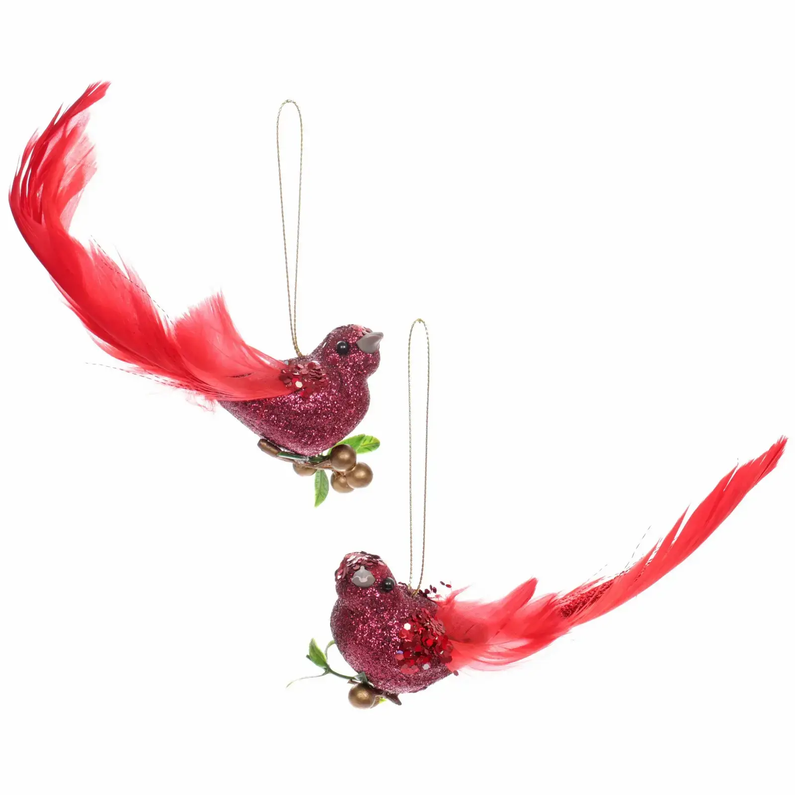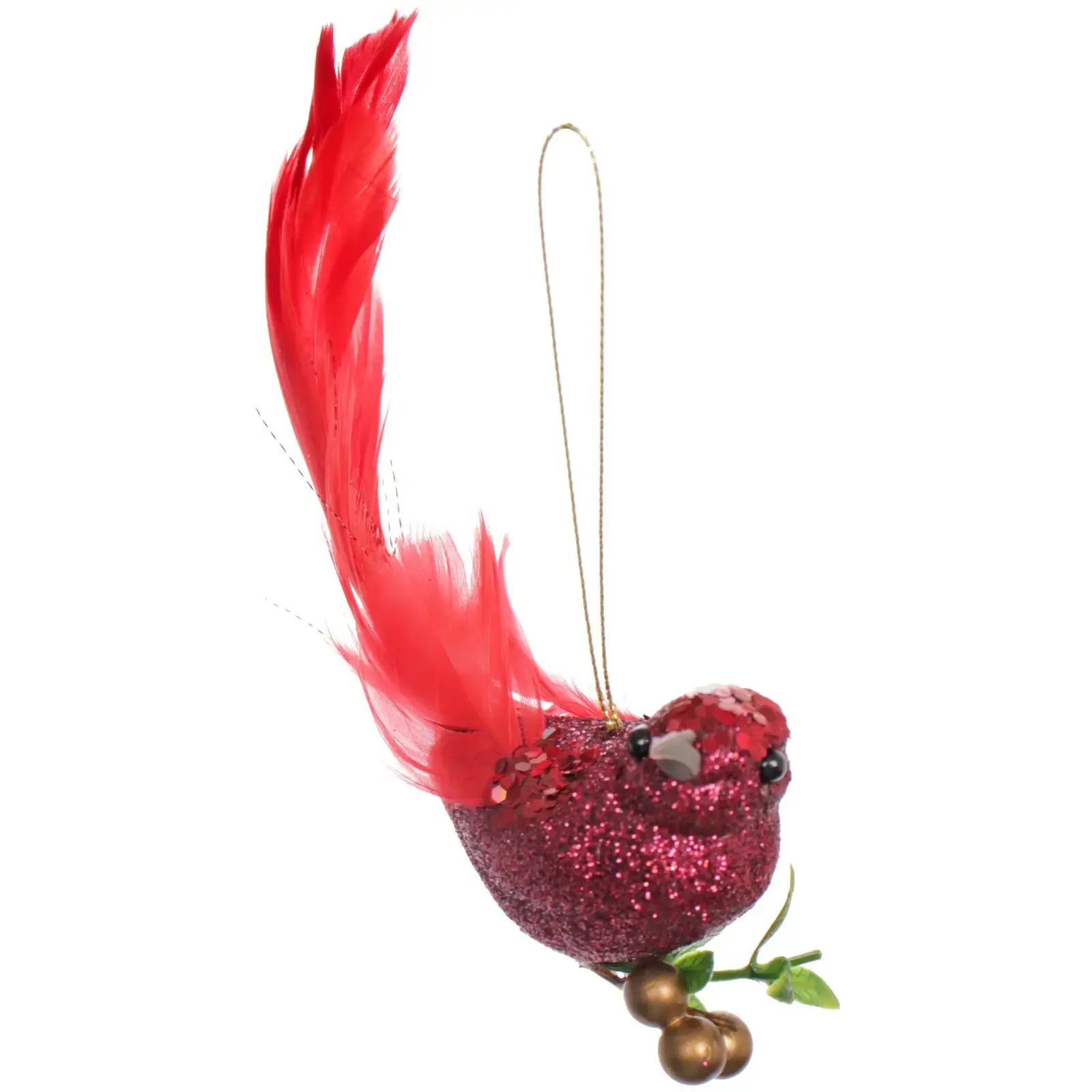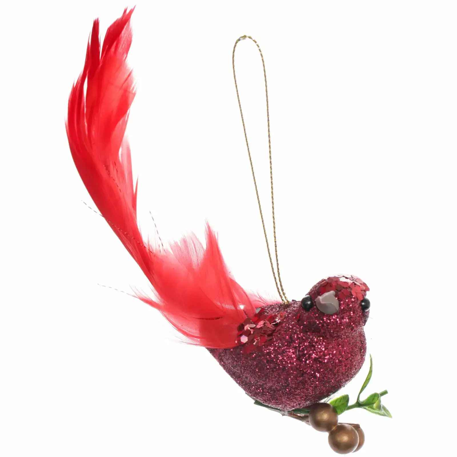 Создайте атмосферу праздника с подвесным украшением «Величественная птица». Это яркое и стильное изделие станет отличным дополнением вашего интерьера, добавляя нотки уюта и радости. Каждая птица выполнена в насыщенном красном цвете с блестящей отделкой, что придаёт им эффектный вид. Декоративные элементы, такие как стразы и зелёные листья, делают их ещё более привлекательными.