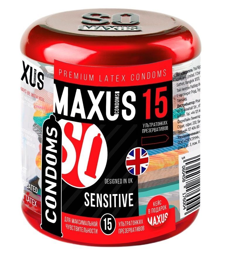 Презервативы ультратонкие «MAXUS Sensitive», 15 шт, латекс 0,05 мм, металлический кейс в подарок