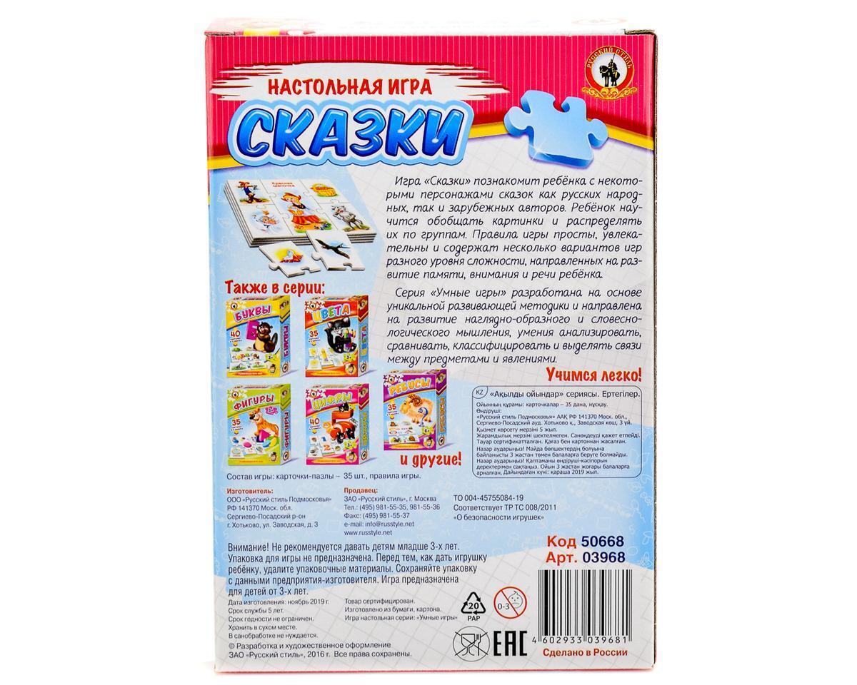 Развивающая игра-пазл "Сказки", 35 карточек, для малышей 3+, развитие речи и внимания