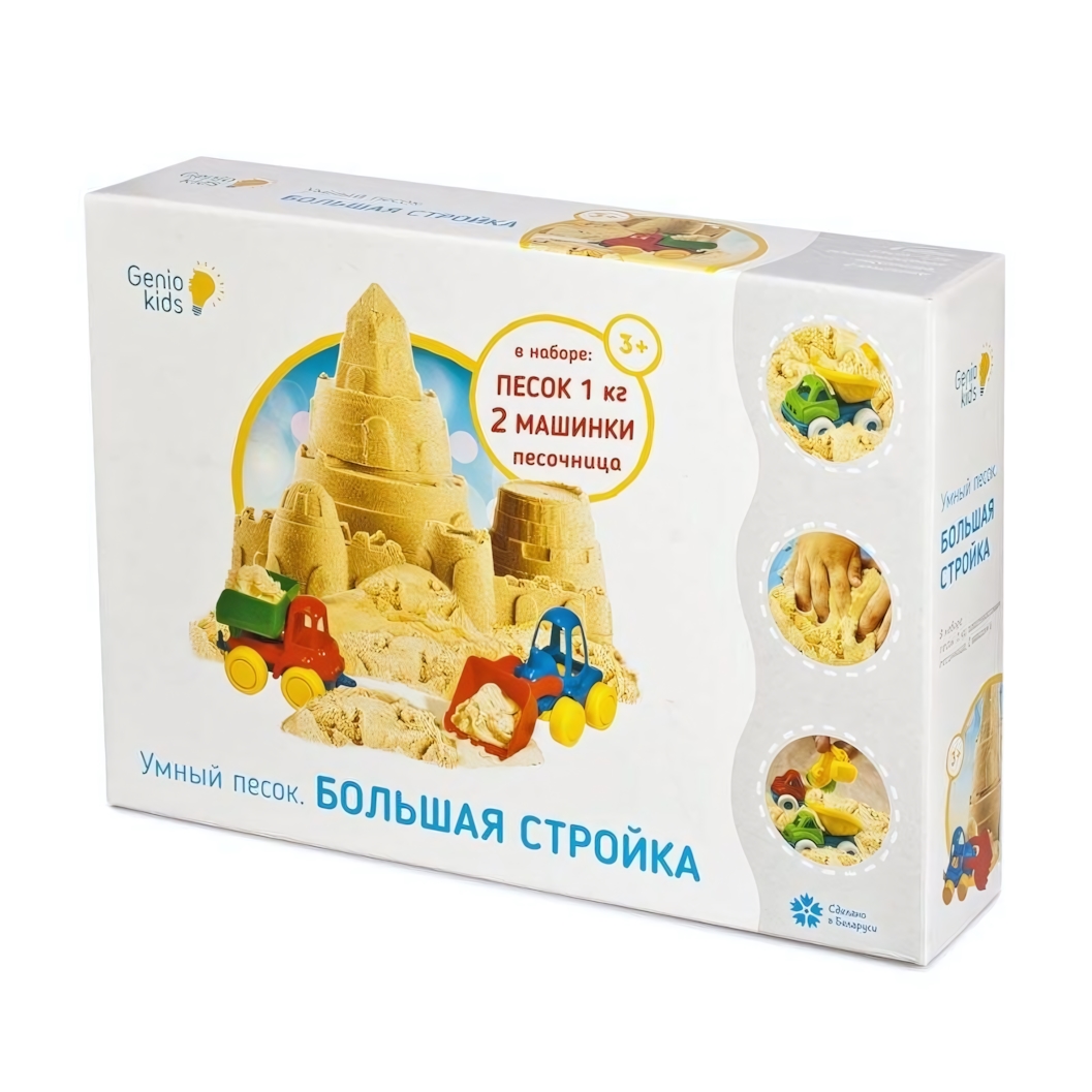 Погрузитесь в мир ярких фантазий и творчества с набором "Большая стройка" для детей от 3 лет. Это идеально подходит для развития мелкой моторики, воображения и творческих навыков у малышей. В комплект входит 1 кг безопасного умного песка, пластмассовая песочница, 2 машинки и формочки, что позволяет создавать яркие сооружения, замки и фигуры из песка без грязи и липкости.