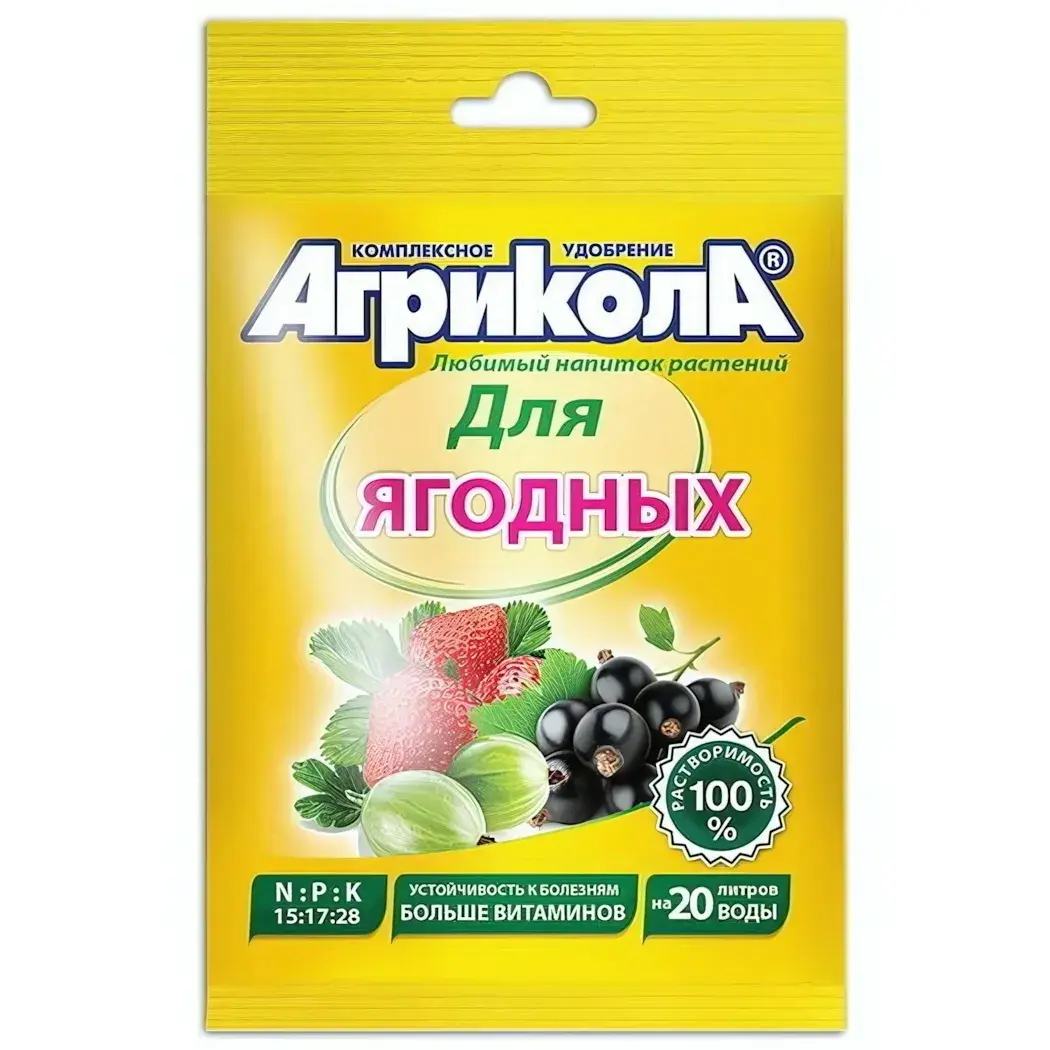 Упаковка удобрения весит 50г и имеет яркий желтый цвет с изображениями ягод, что делает ее заметной на полке. Удобная упаковка позволяет легко хранить и использовать продукт. Не упустите возможность сделать ваш сад более плодородным с помощью удобрения «Агрикола»!
