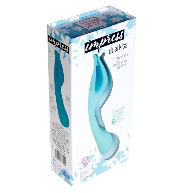 Вибратор универсальный 'Impress Dual Kiss', 12 режимов, силикон, голубой с белым, 21.5 см