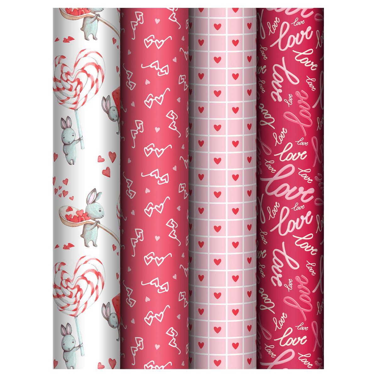 Упаковочная бумага глянцевая 70*100см, плотность 80г/м2, ассорти дизайнов 'Love'
