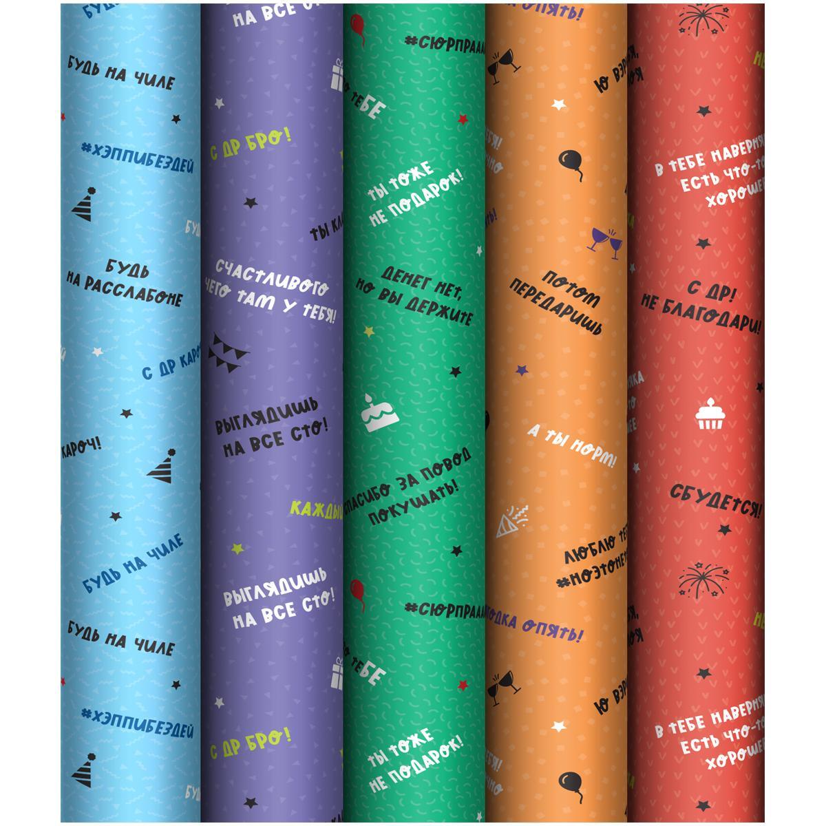 Упаковочная бумага глянцевая 70х100 см, ассортимент «Прикольные надписи», плотность 80 г/м², MESHU