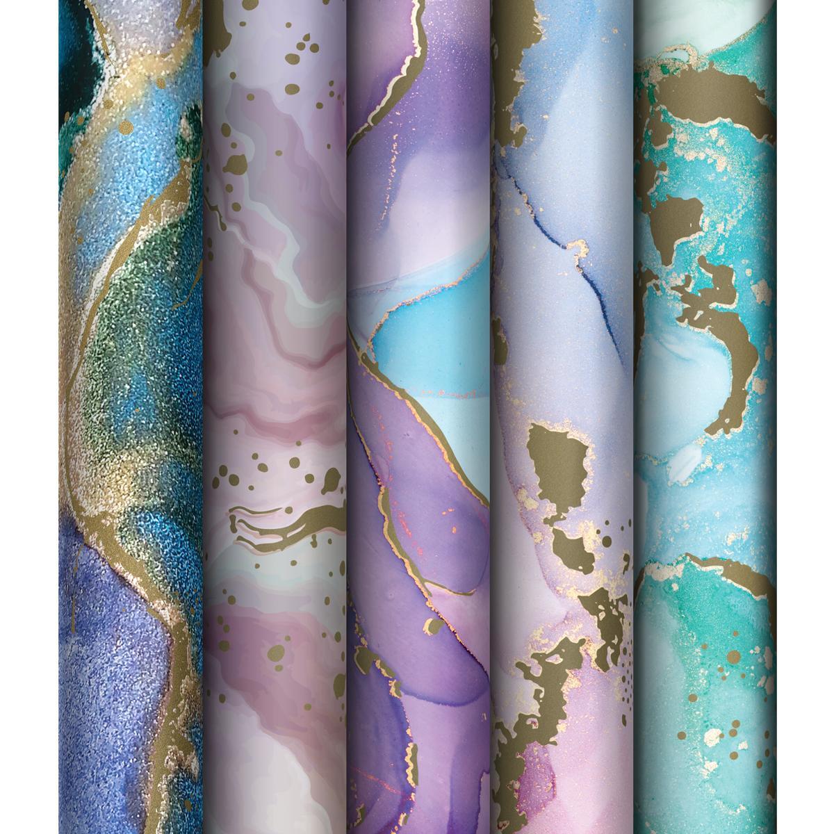 Упаковочная бумага глянцевая 70*100см, плотность 80г/м2, ассорти дизайнов "Мраморный стиль"