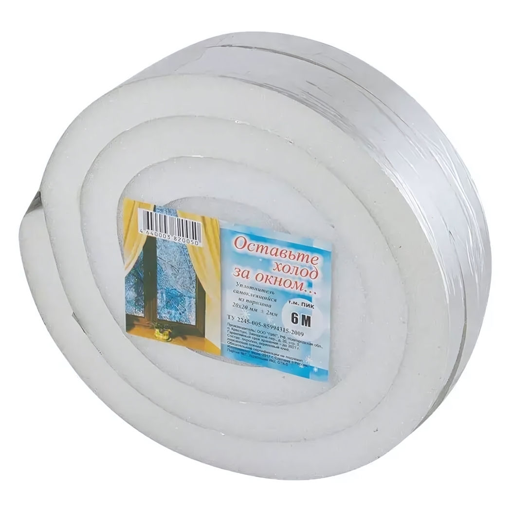 Уплотнитель самоклеящийся для окон "Поролон" 20мм, 6м, надежная защита от холода