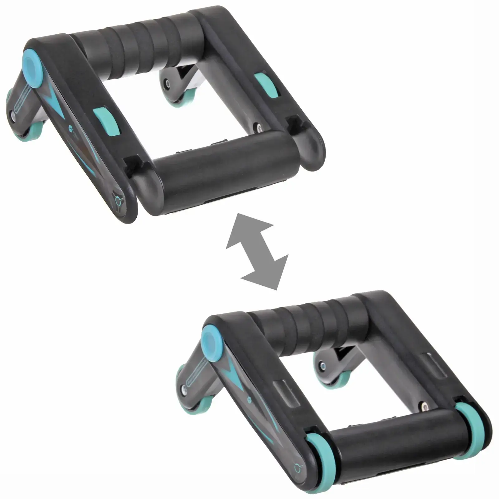 Упоры для отжиманий складные с роликами Sportage, пластик, черно-голубой цвет, эргономичные ручки